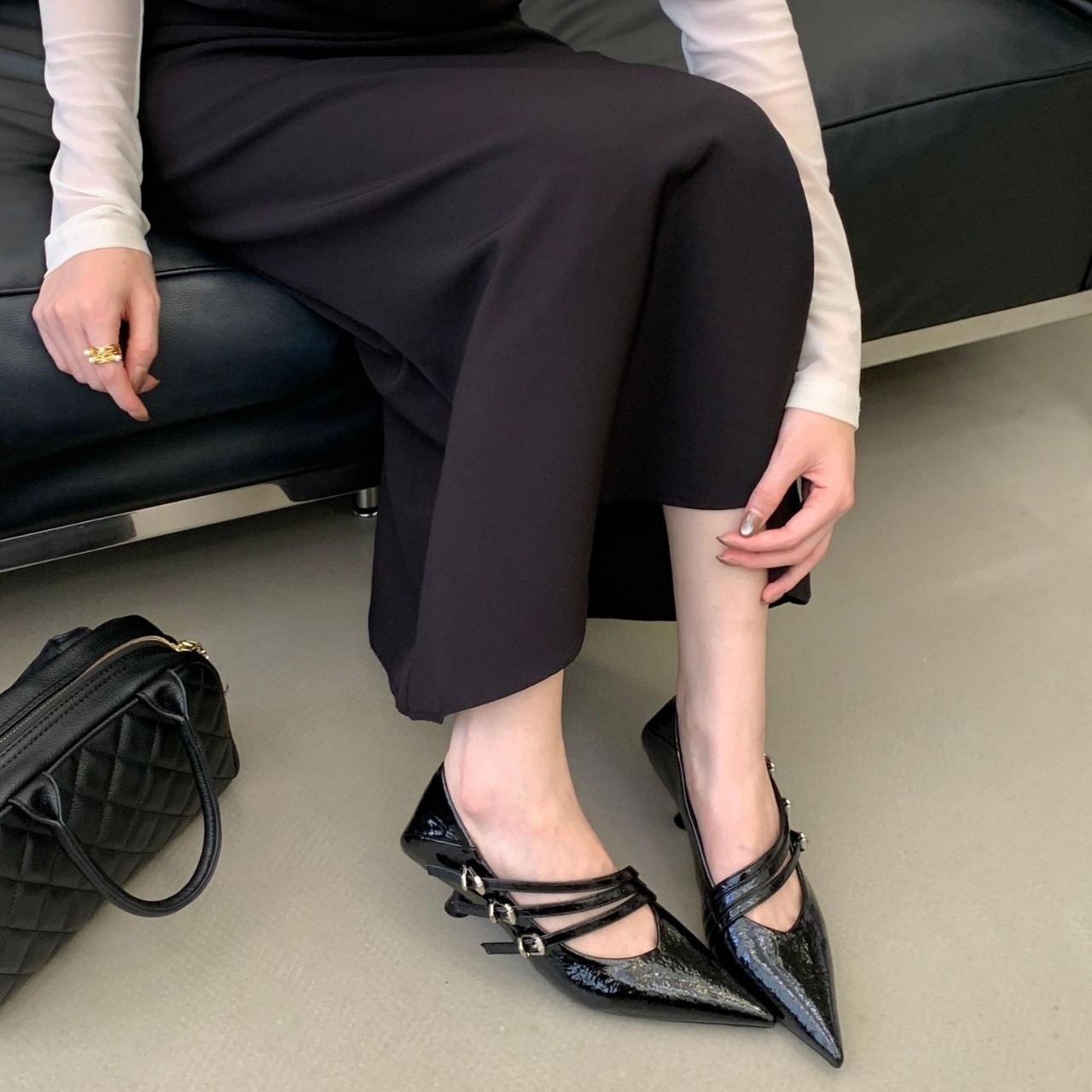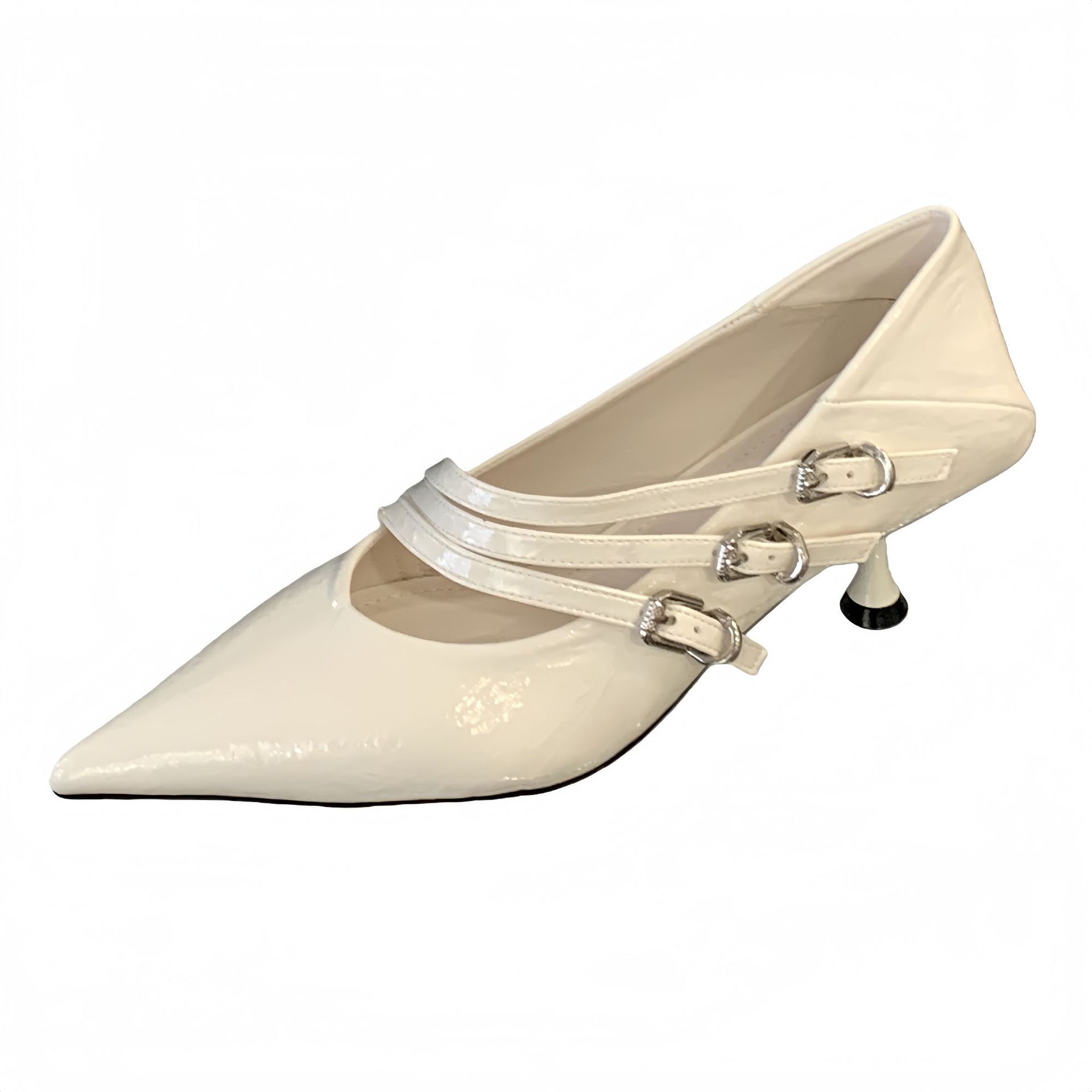 新款优雅尖头法式女单鞋细跟高跟饰带搭扣时尚简约风通勤百搭女鞋