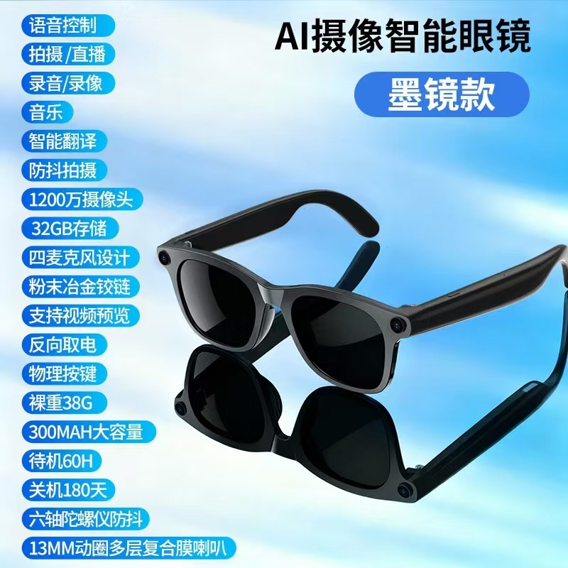| 包装清单 | 智能眼镜x1、充电线x1、清洁布x1、说明书x1 | 颜色 | 黑色墨镜 |