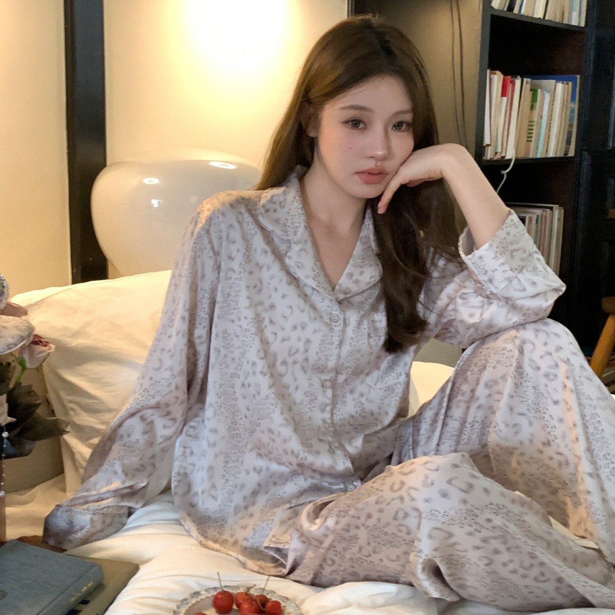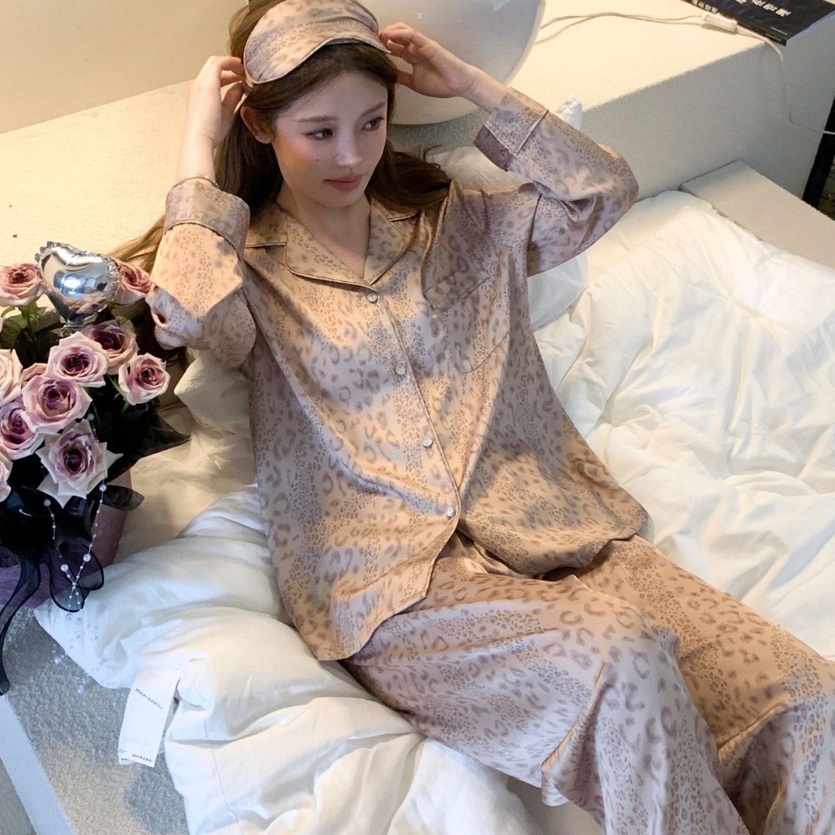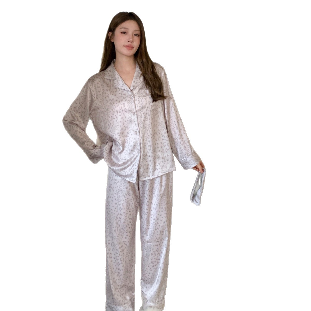 睡衣女款高级感豹纹冰丝睡衣女春秋季长袖长裤套装小红书抖音同款