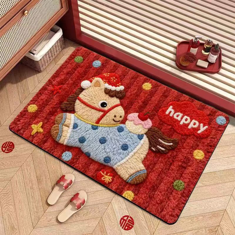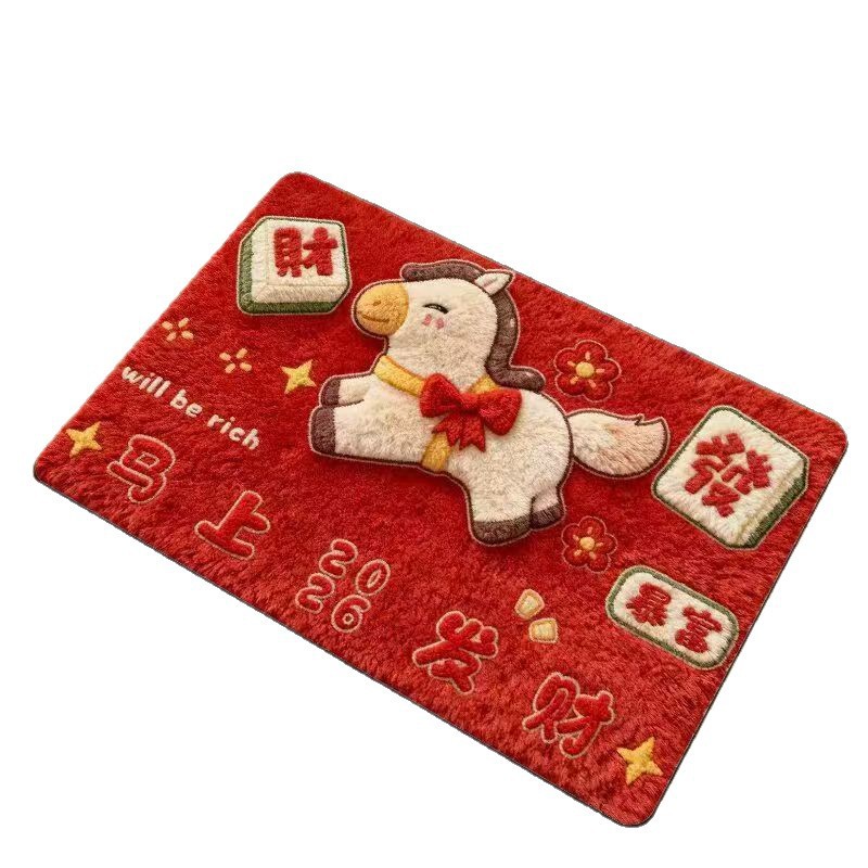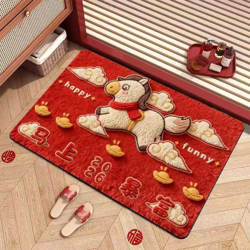 2026新款马年红色喜庆脚垫可手洗代发裁剪防滑耐脏简约可爱脚垫