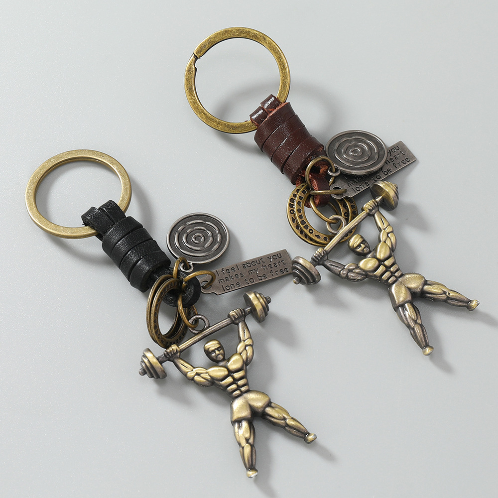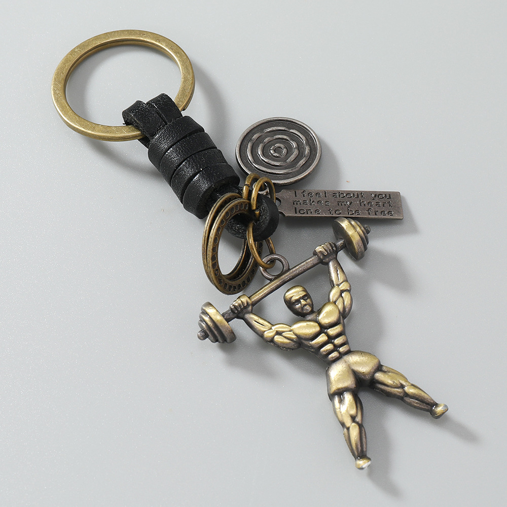 创意古铜健美举重运动员挂坠装饰男士汽车钥匙扣欧美流行热销配饰