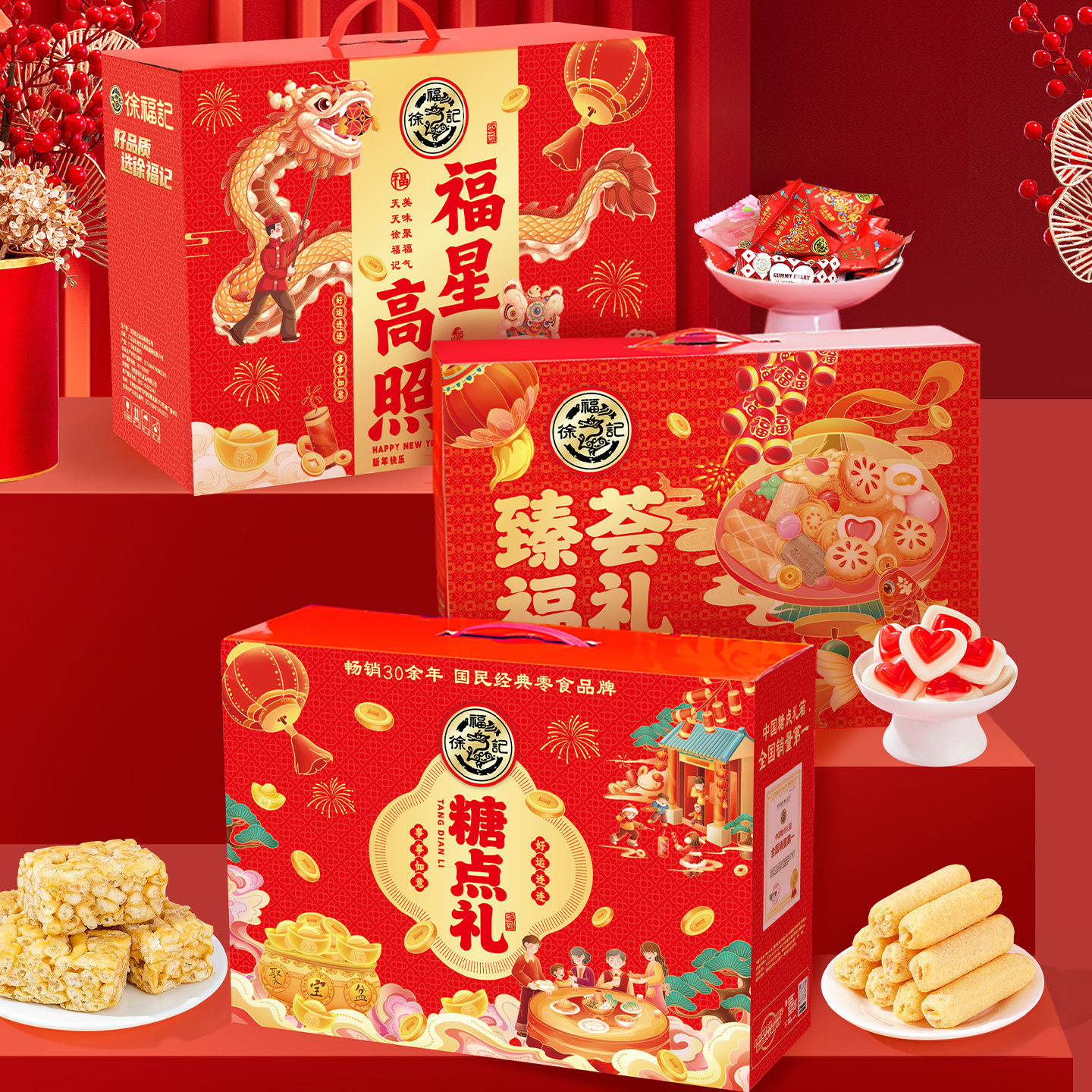 | 包装规格 | 前程似锦【糖果636g】 | 包装规格 | 恭贺新春【双层礼盒726g】 |