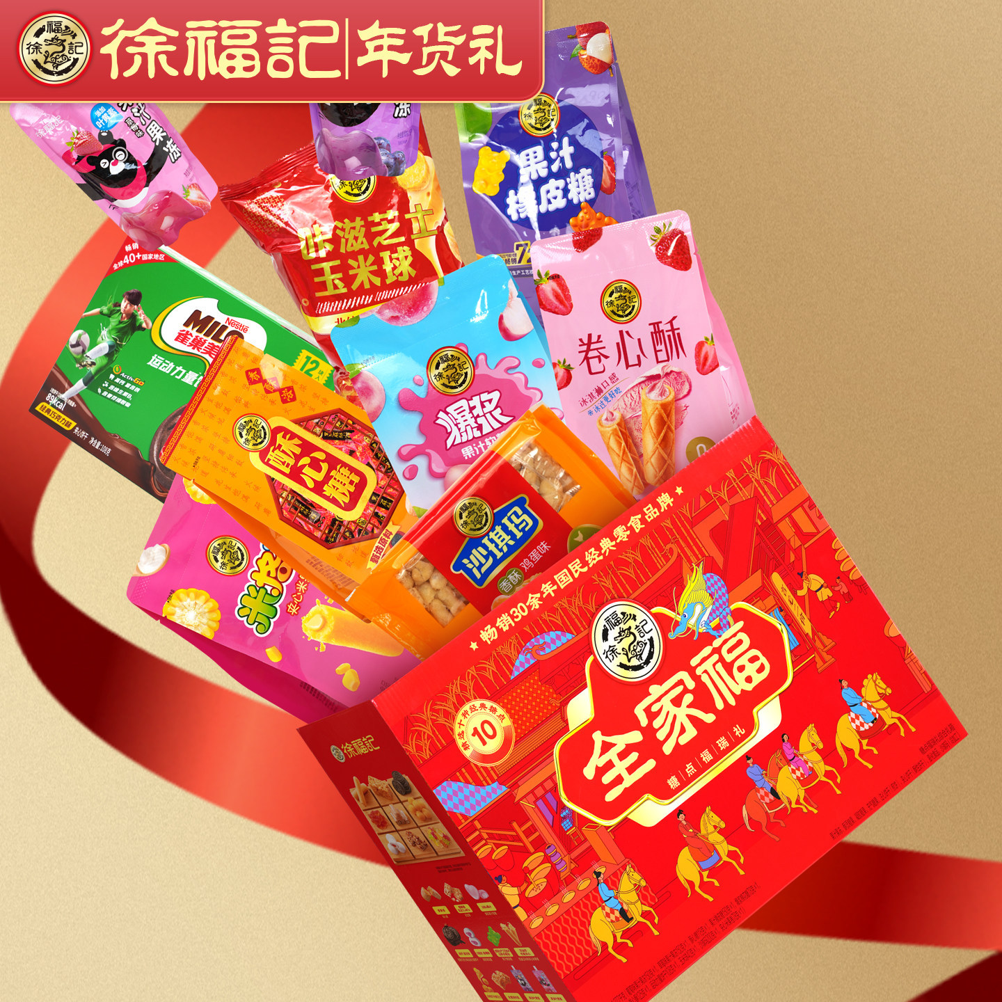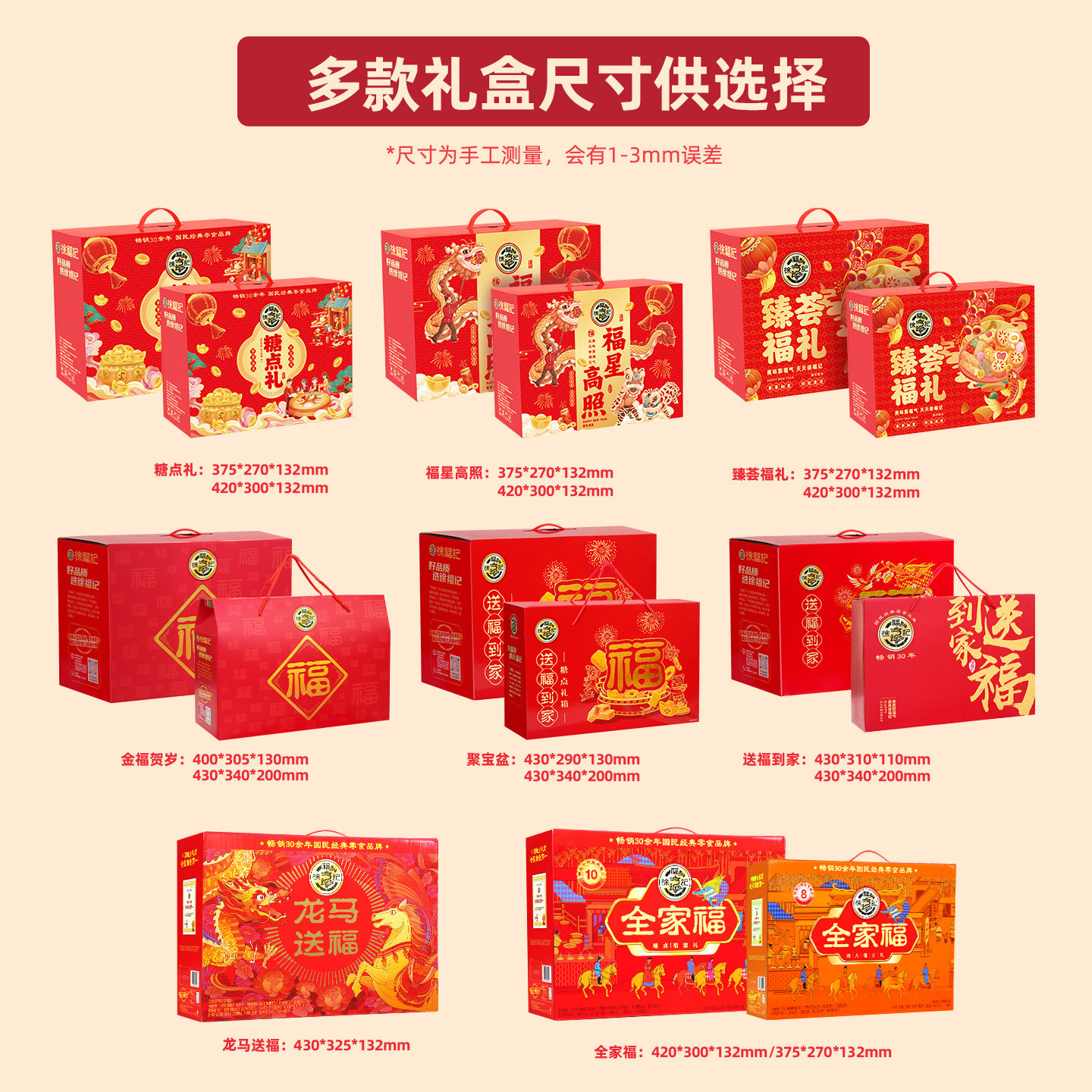 | 包装规格 | 迎福贺岁套餐2050g | 包装规格 | 徐福记玛上有福礼盒1250g |