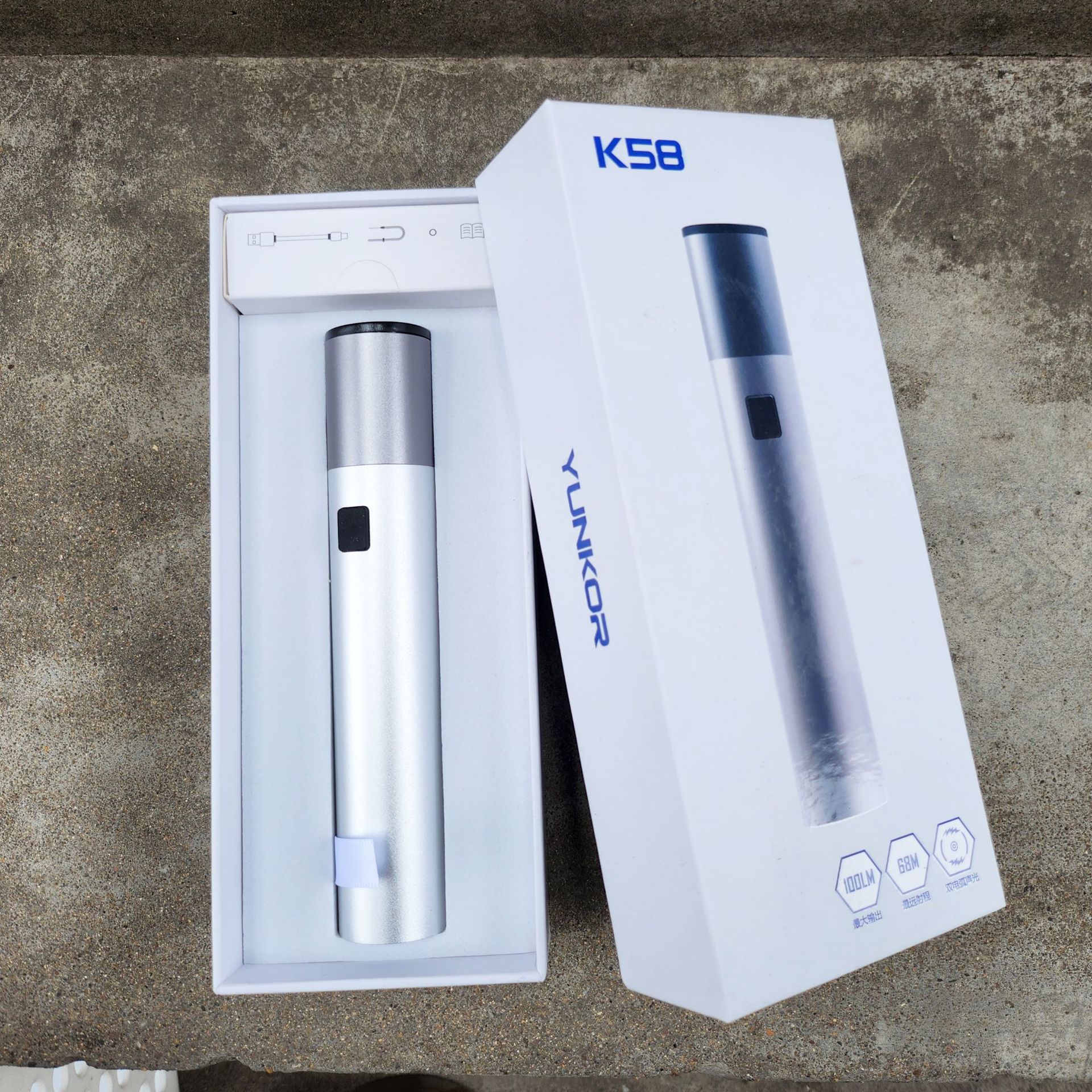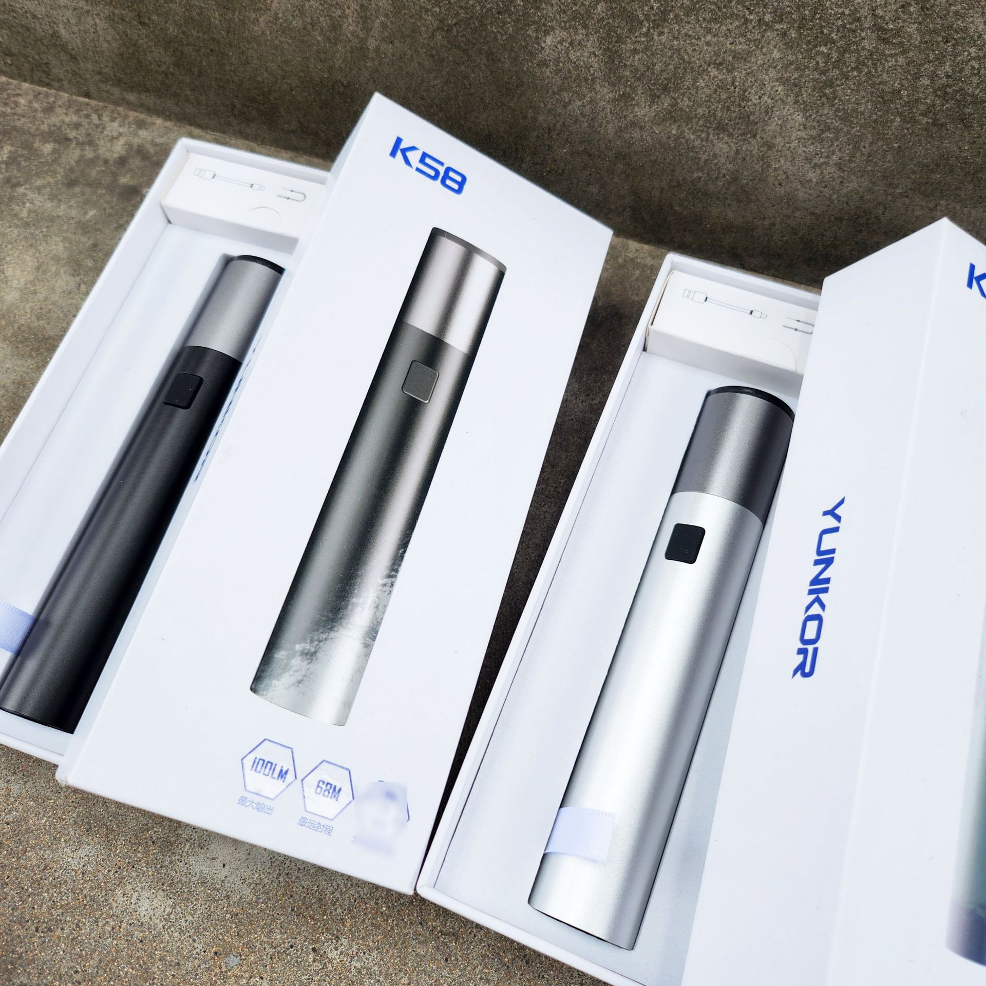 K58 彩盒款户外露营直充便携式多功能手电筒自卫防护手电厂家直销