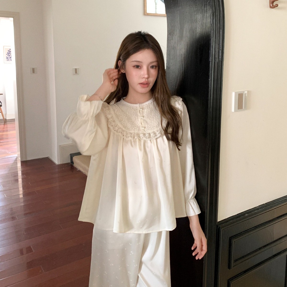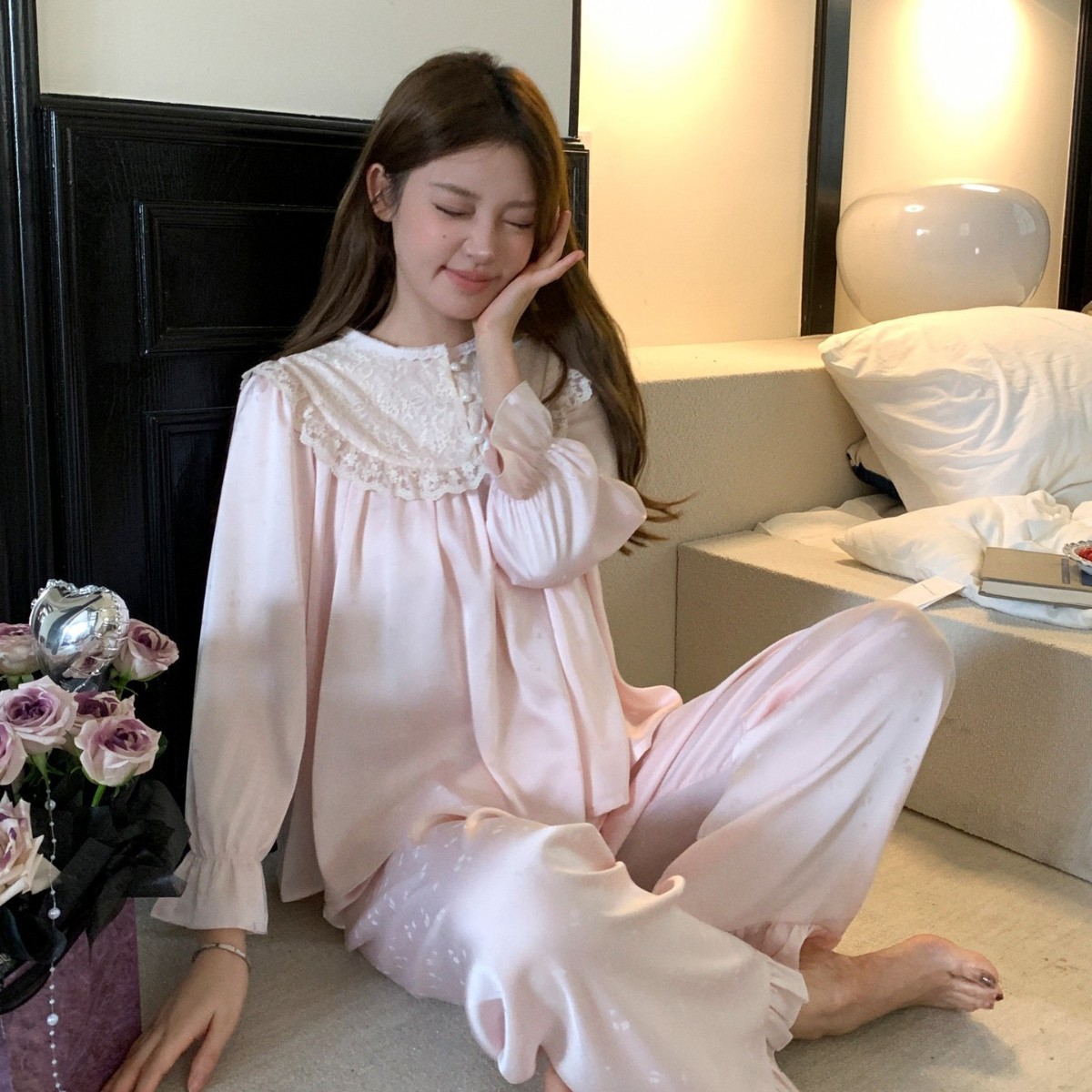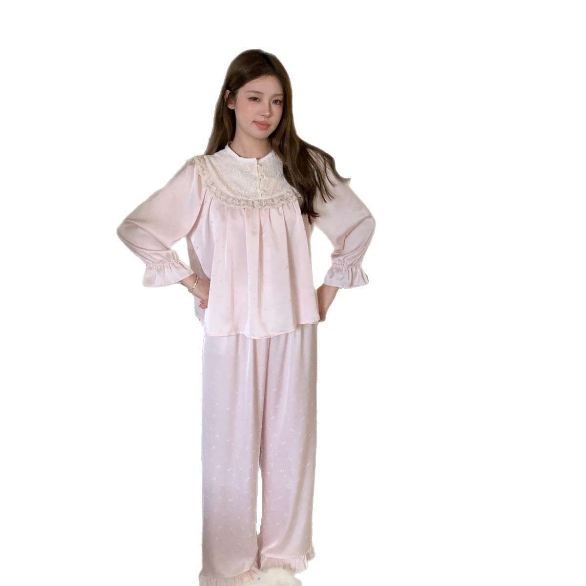 2026新法式公主风冰丝睡衣女轻奢提花长袖长裤家居服外贸可外穿