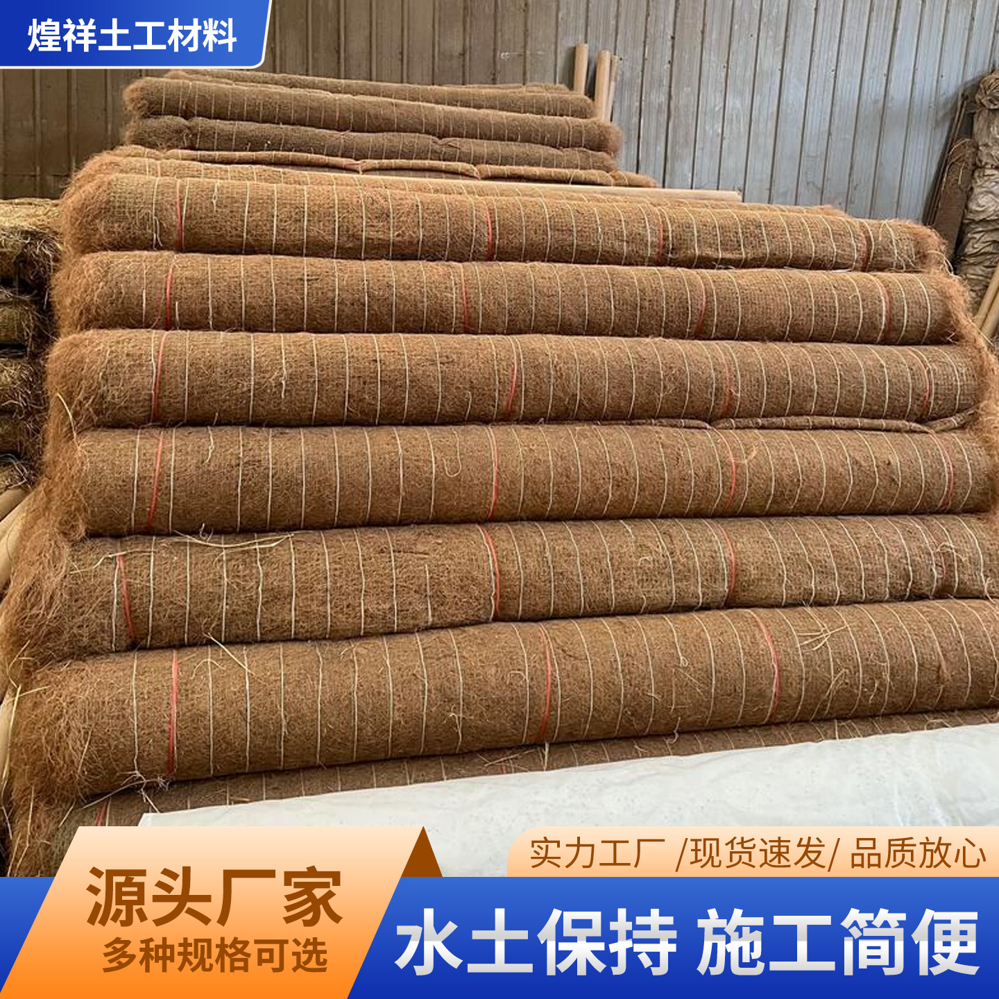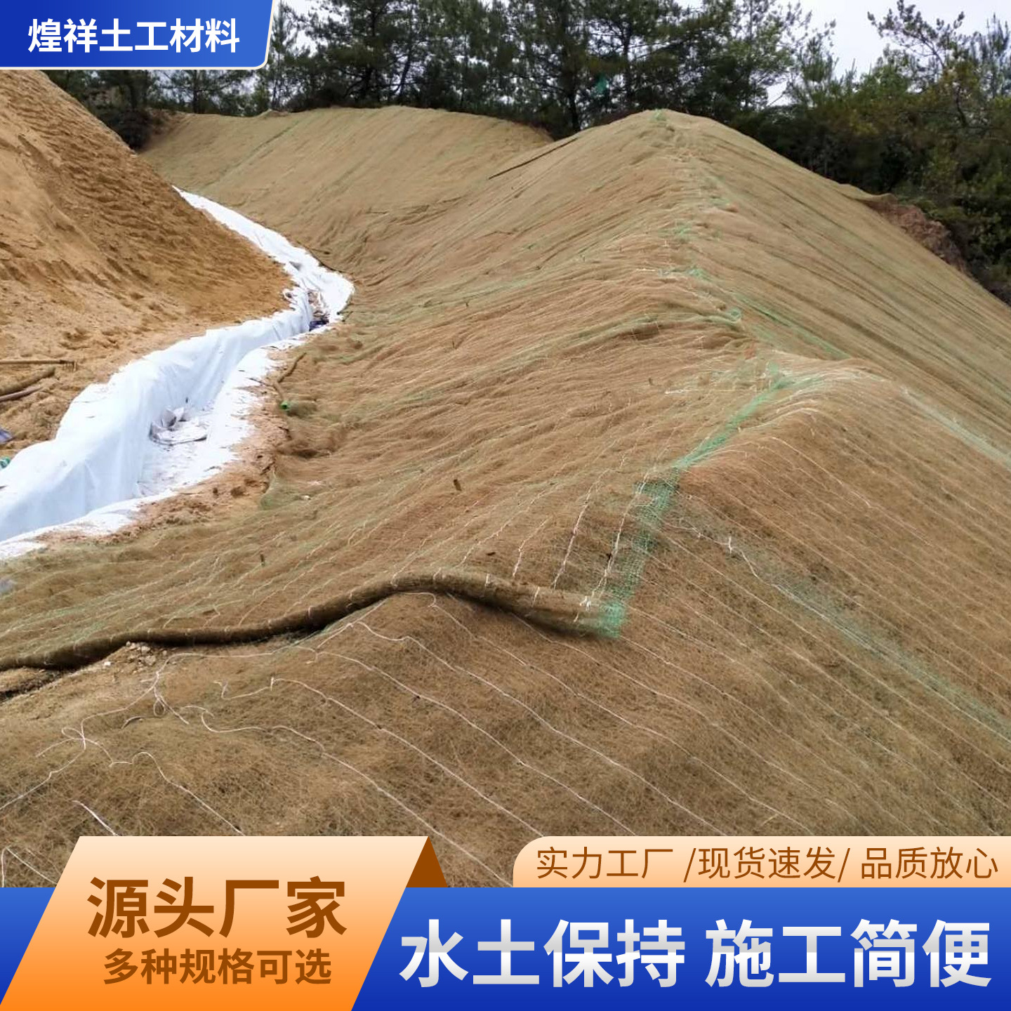 椰丝毯植物纤维加筋抗冲秸秆毯护坡固化高速工程生态绿植椰丝毯