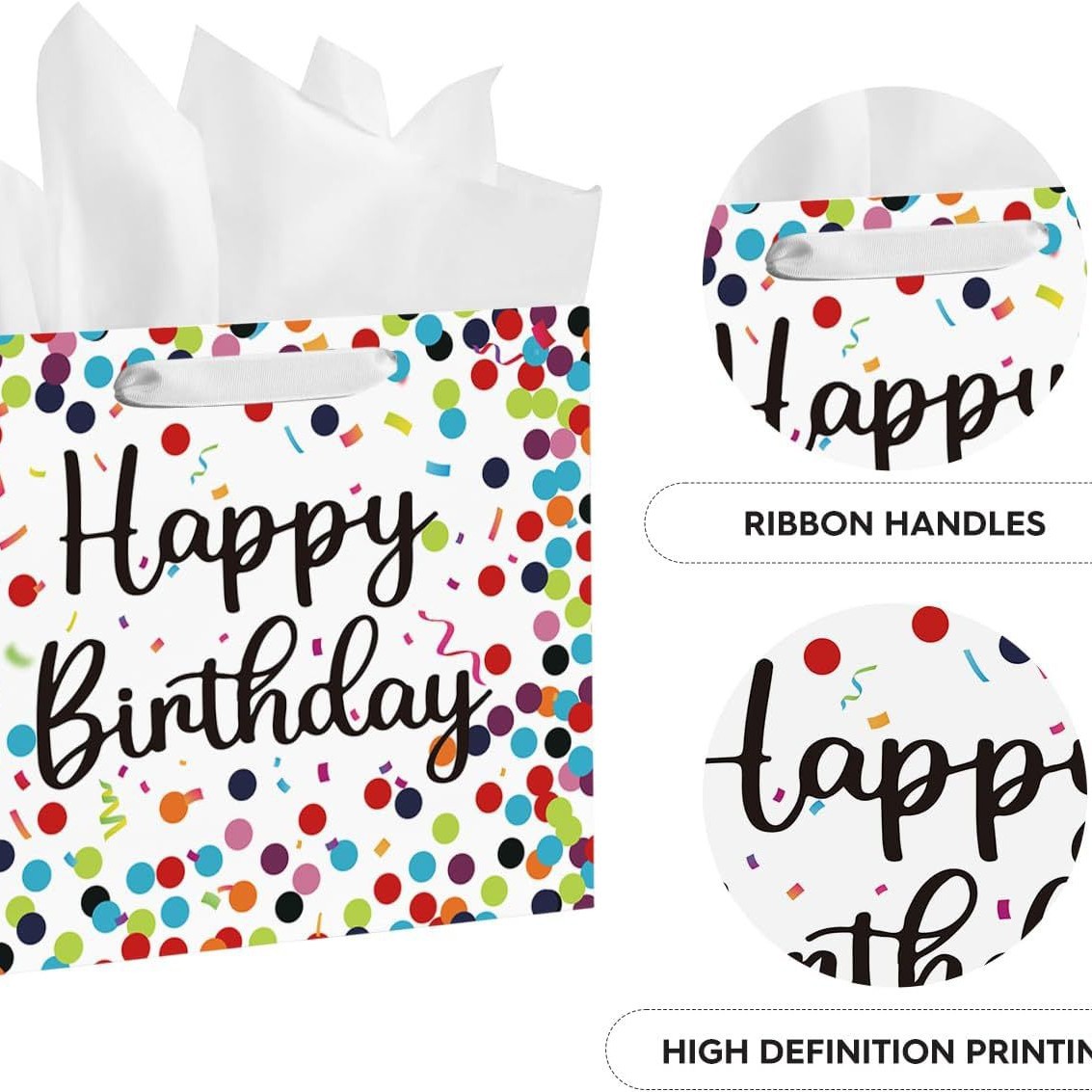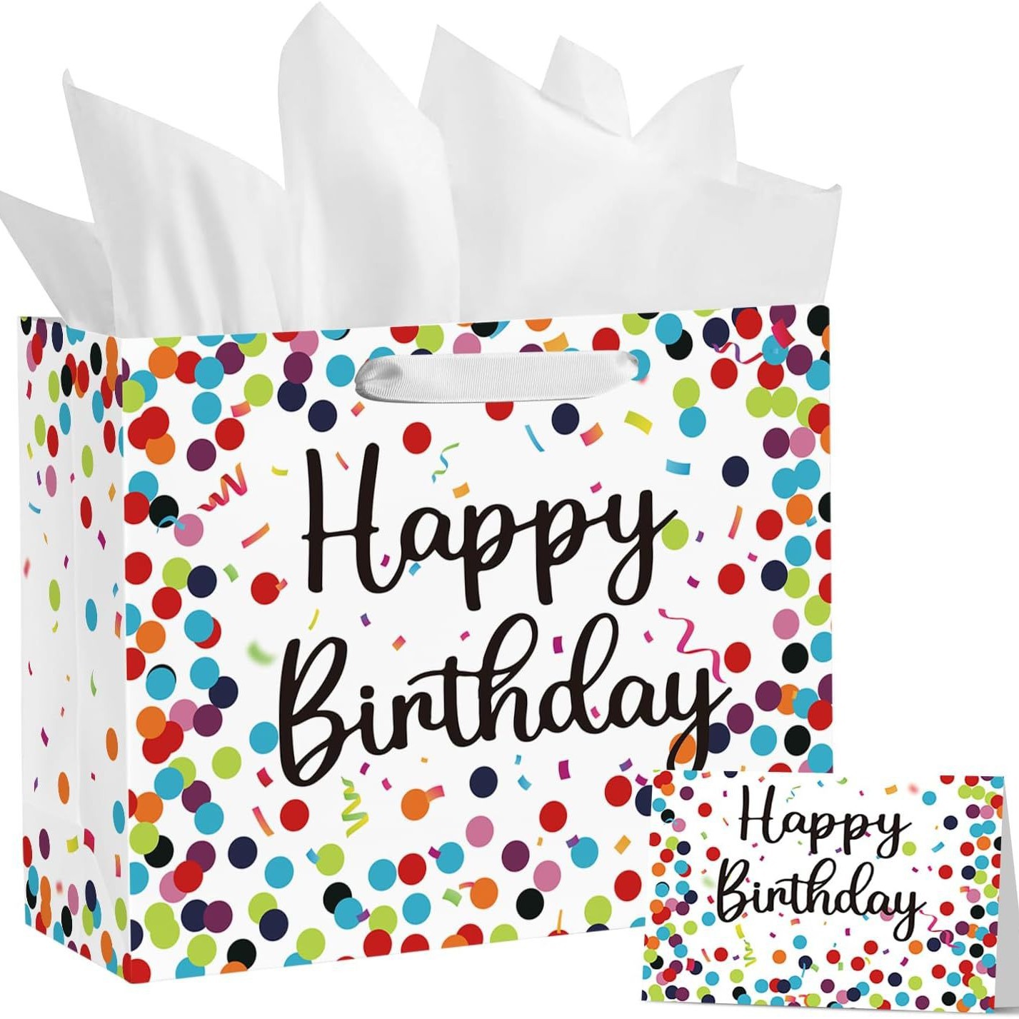 大号生日礼物纸袋带纸巾卡片生日快乐圆点飘带适合男女士儿童生日