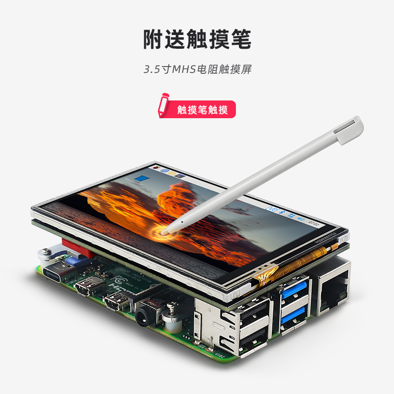 树莓派5/4B 3.5寸MHS触摸屏480*320分辨率GPIO显示屏兼容支架风扇