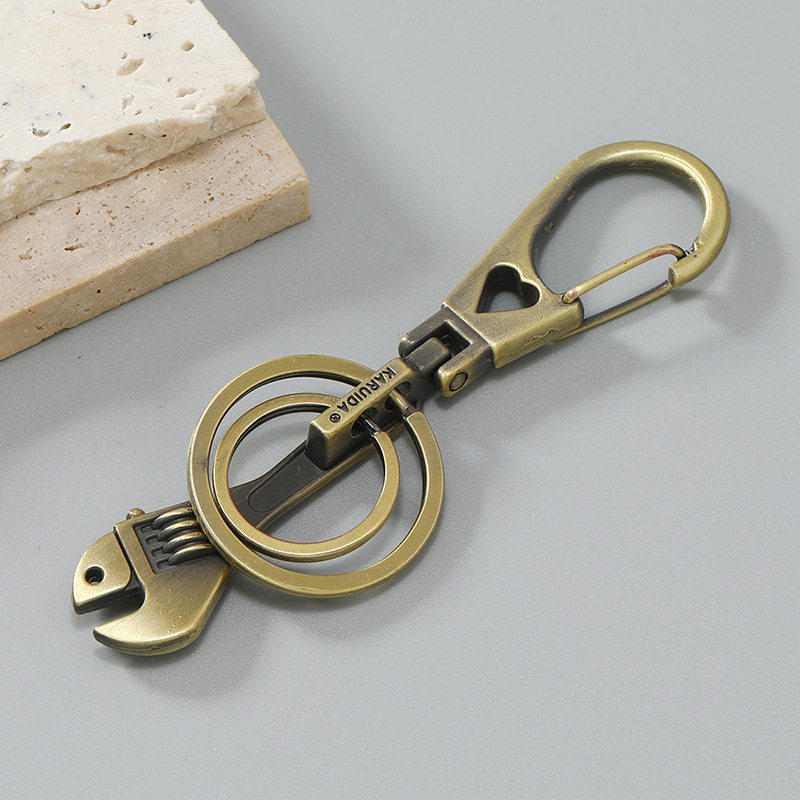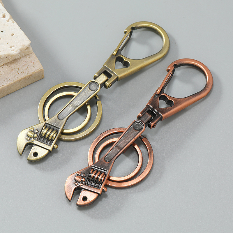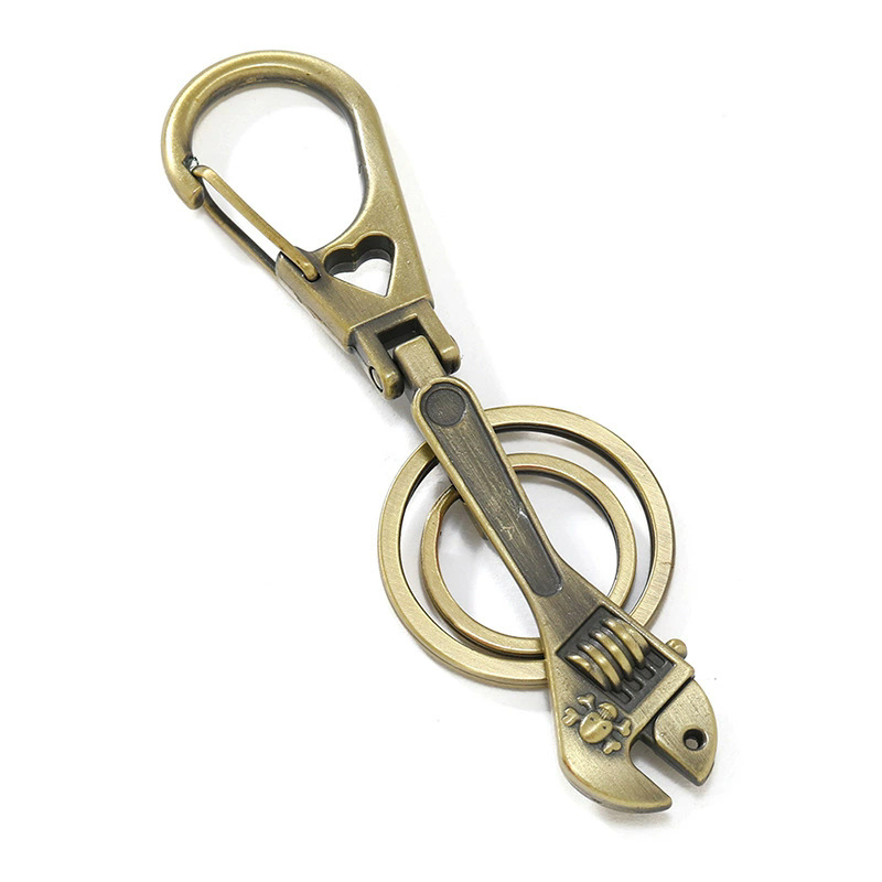 创意古铜合金扳手圆环装饰男士汽车钥匙扣防丢小礼品百搭热销腰挂