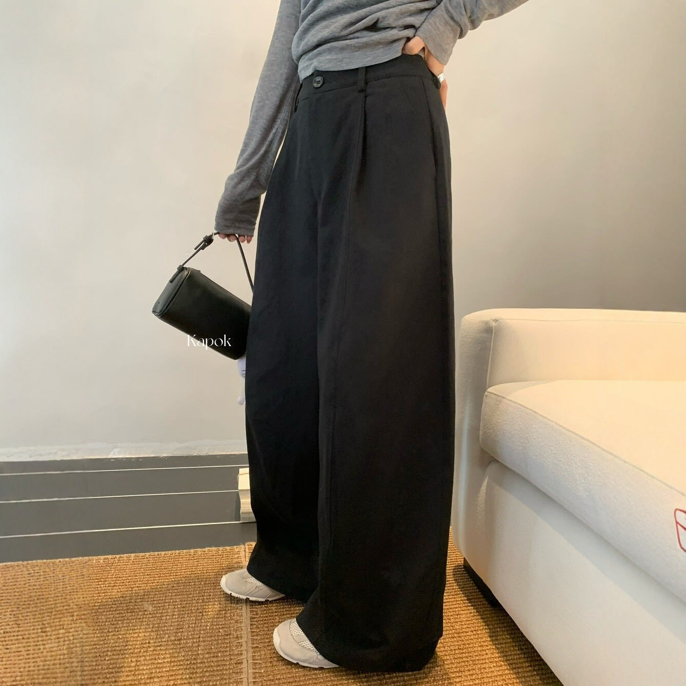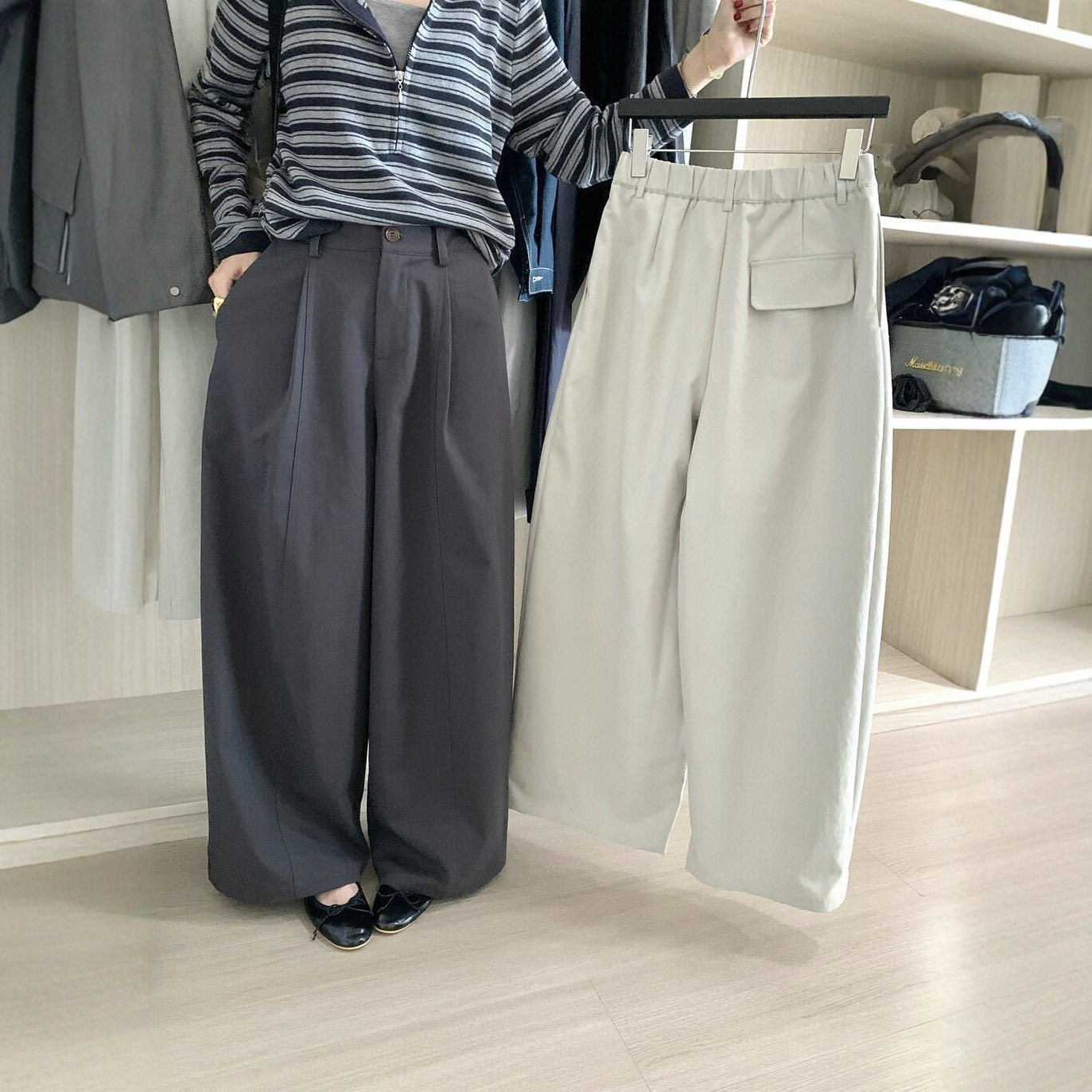 2026早春新款半松紧杆条休闲裤韩系松弛感唇色百搭休闲裤长裤女