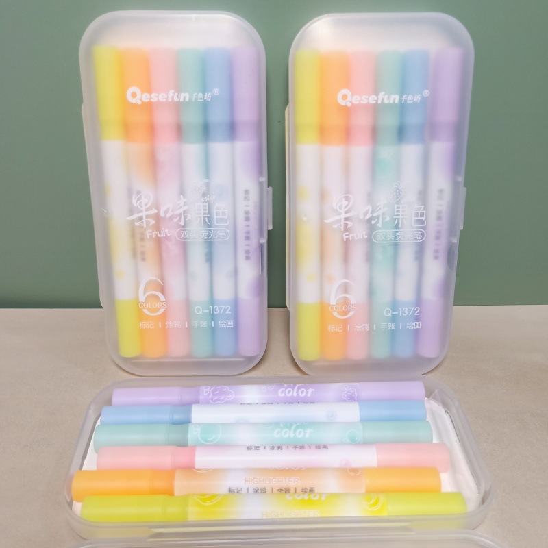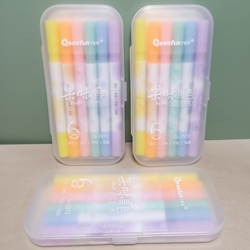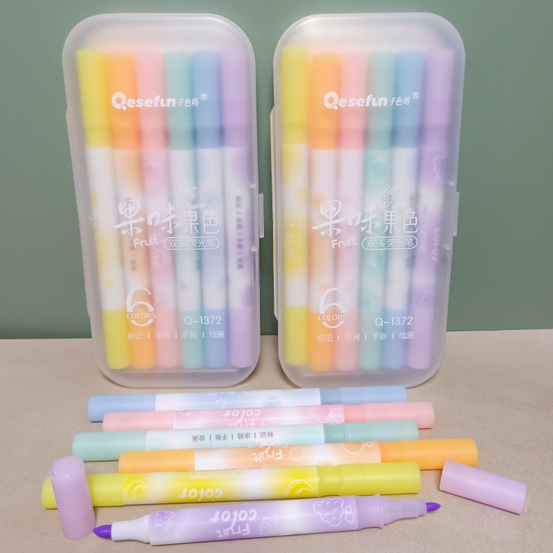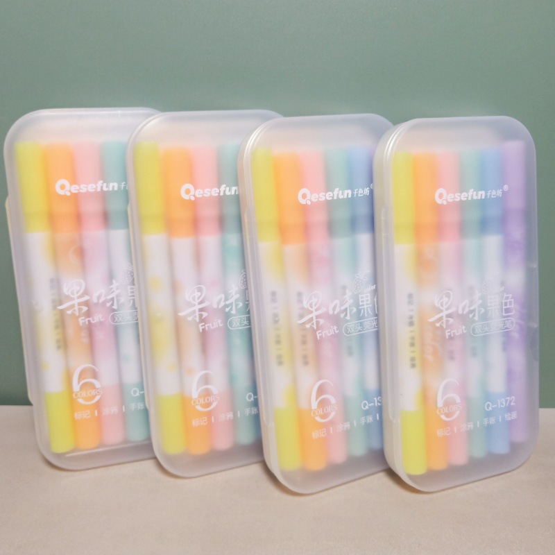 外贸果冻六色双头荧光笔学生果香味划线标记笔彩色记号笔手帐笔批