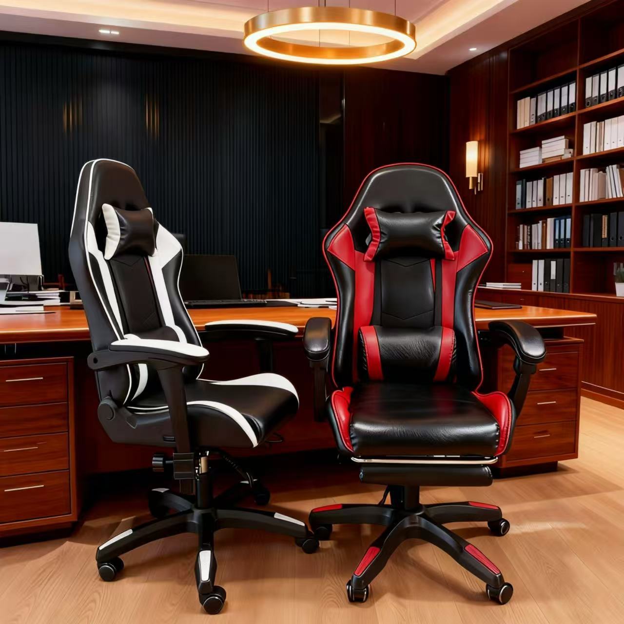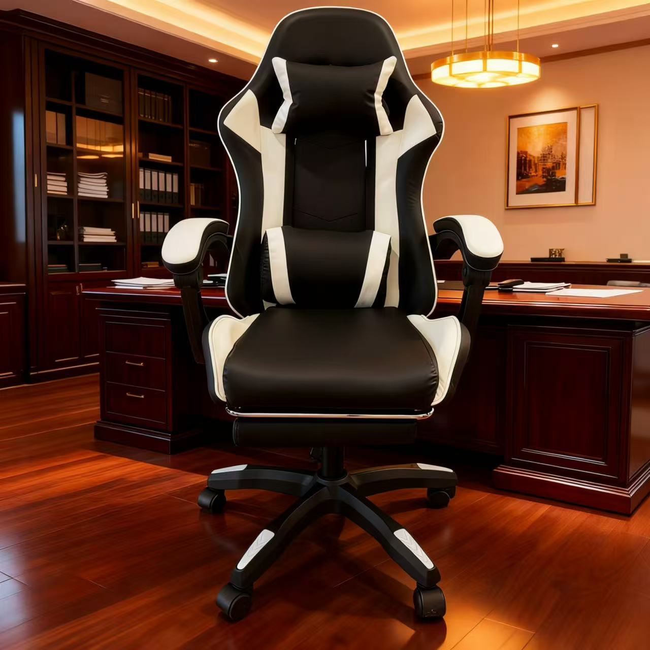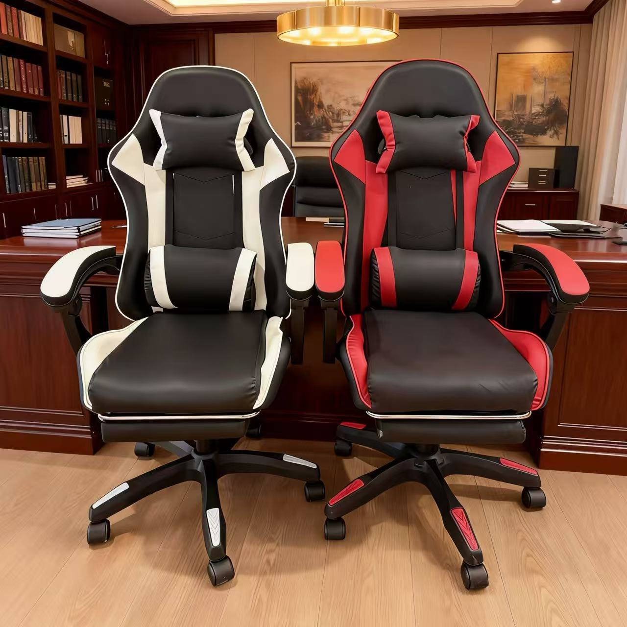 源头工厂黑白拼色电竞椅人体工学护腰可躺办公游戏直播宿舍多用座