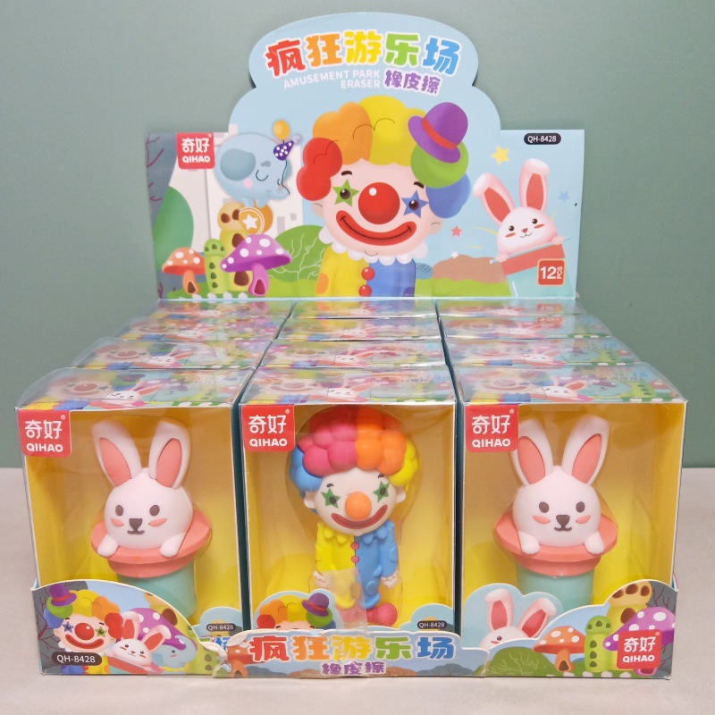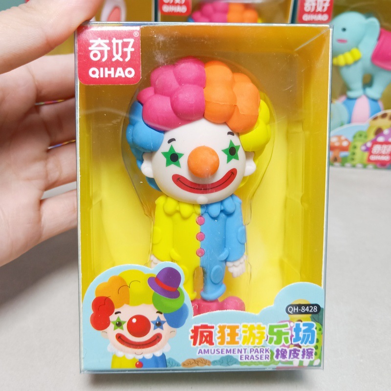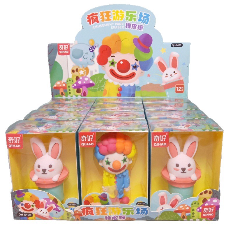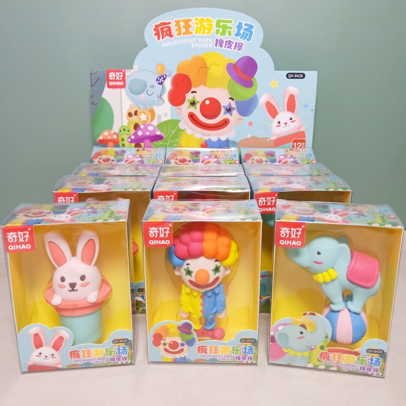 奇好8428疯狂游乐场3D橡皮擦可爱小丑大象兔子可拆卸拼装除屑擦批