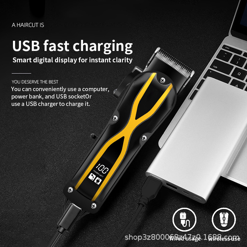海伊娜/HIENA炫彩理发器油头电动理发电推子光头电推剪usb充电式