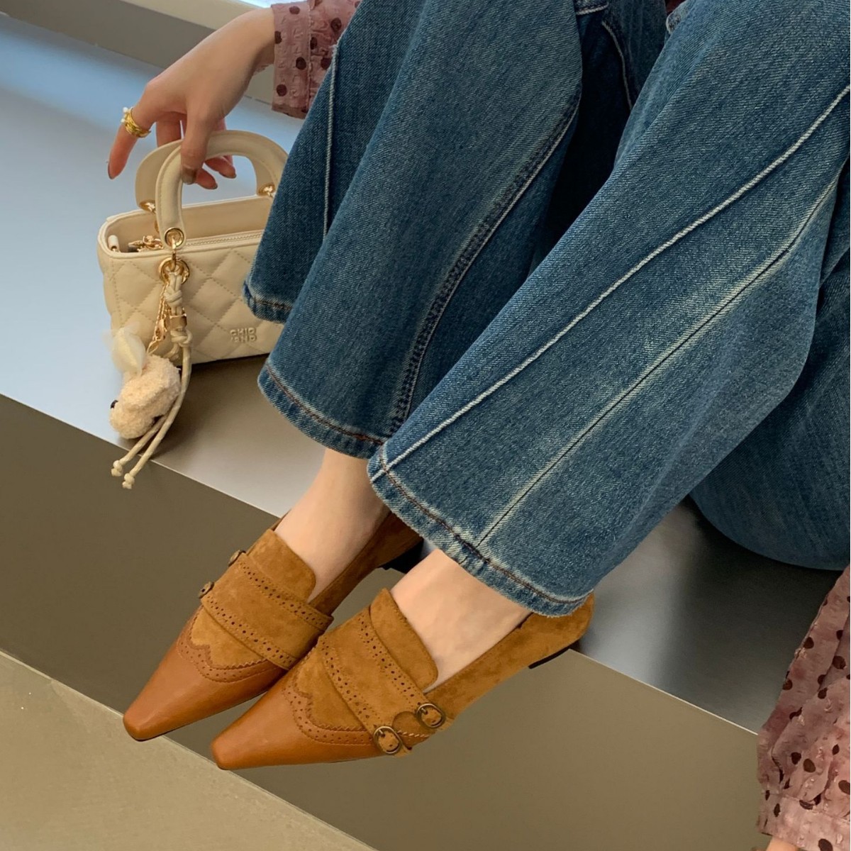 复古小方头皮带扣拼接单鞋2026春季设计感时尚绒面内增高玛丽珍鞋