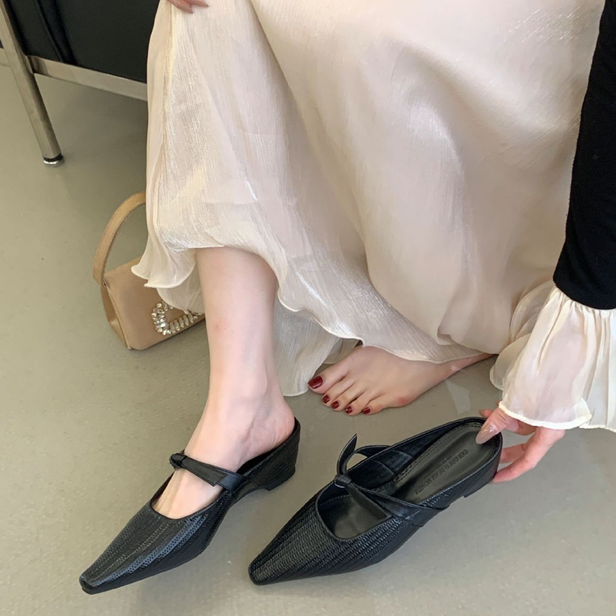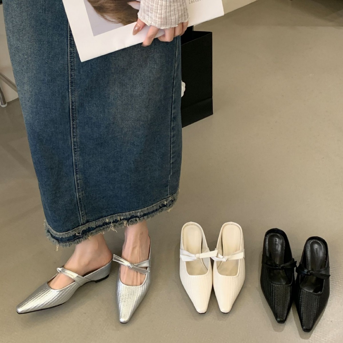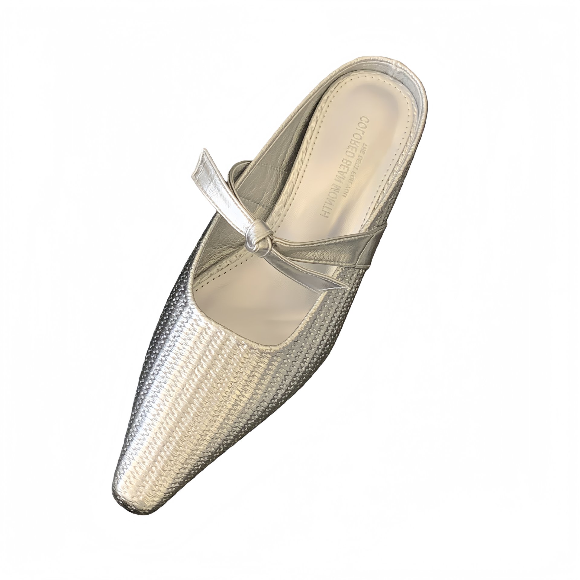 2026春季法式内增高方头浅口女鞋编织蝴蝶结一字扣带银色玛丽珍鞋