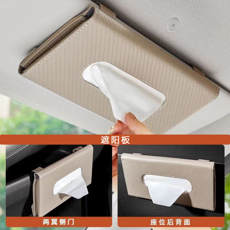 碳纤纹车载挂式抽纸盒汽车遮阳板纸巾包车用椅背天窗餐巾盒纸巾盒