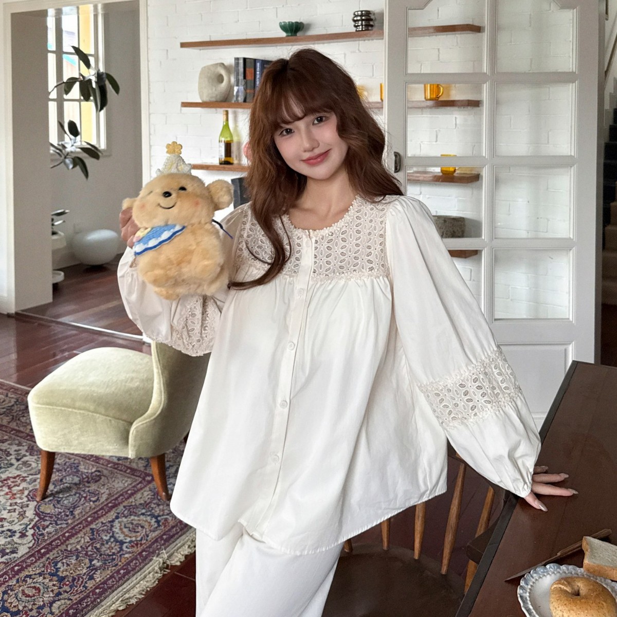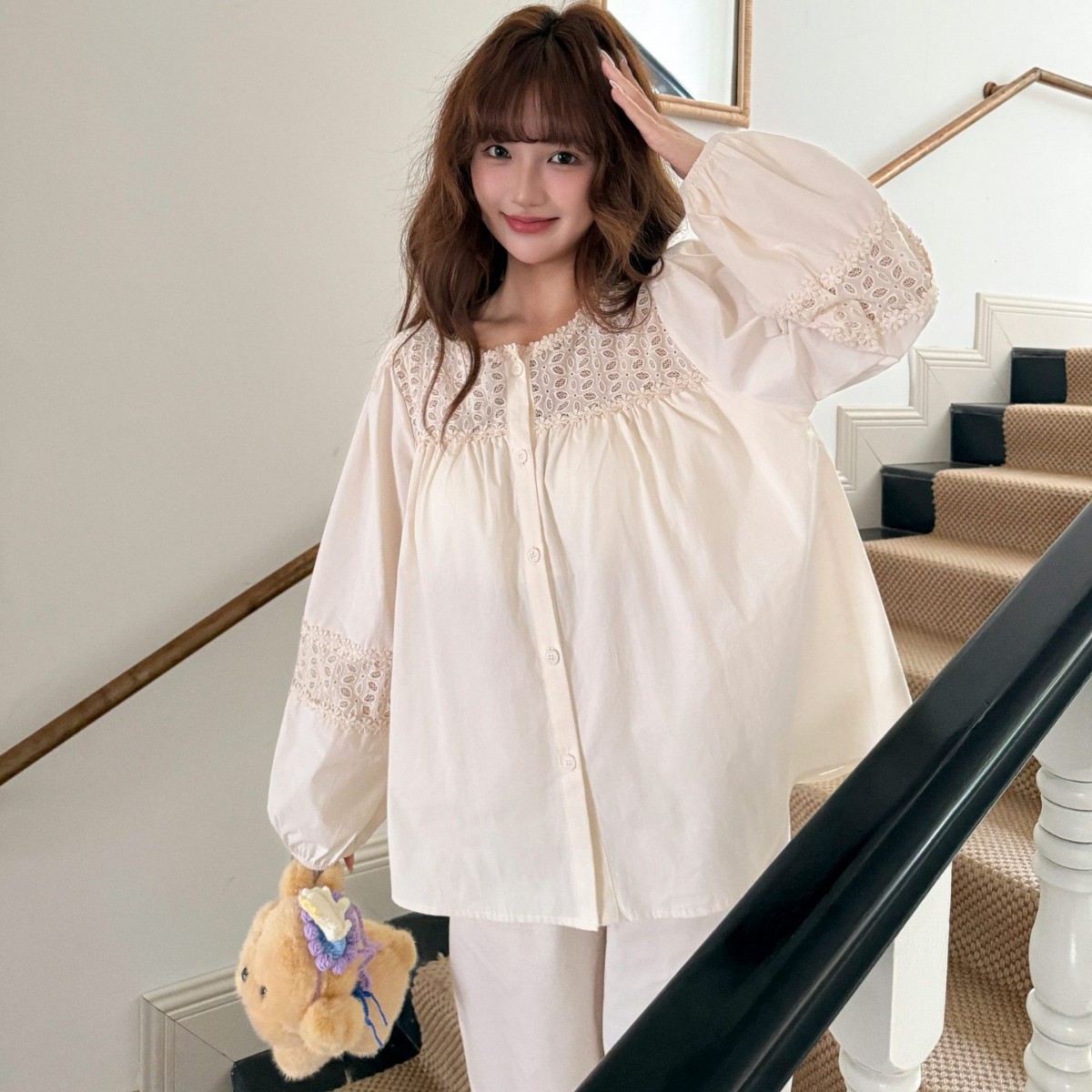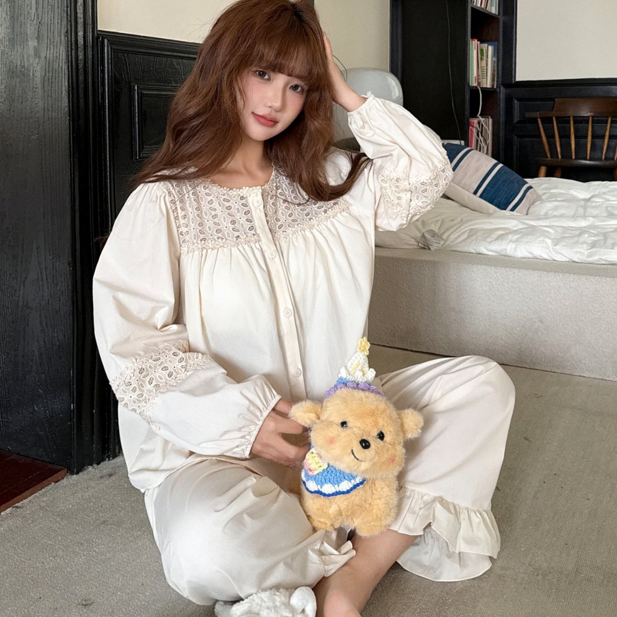 2026新款春季纯棉双层纱棉宫廷风宽松版睡衣女套装家居服外穿热卖