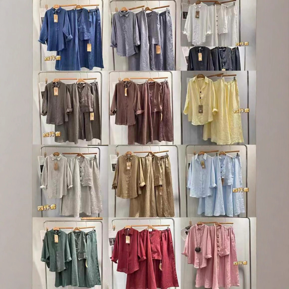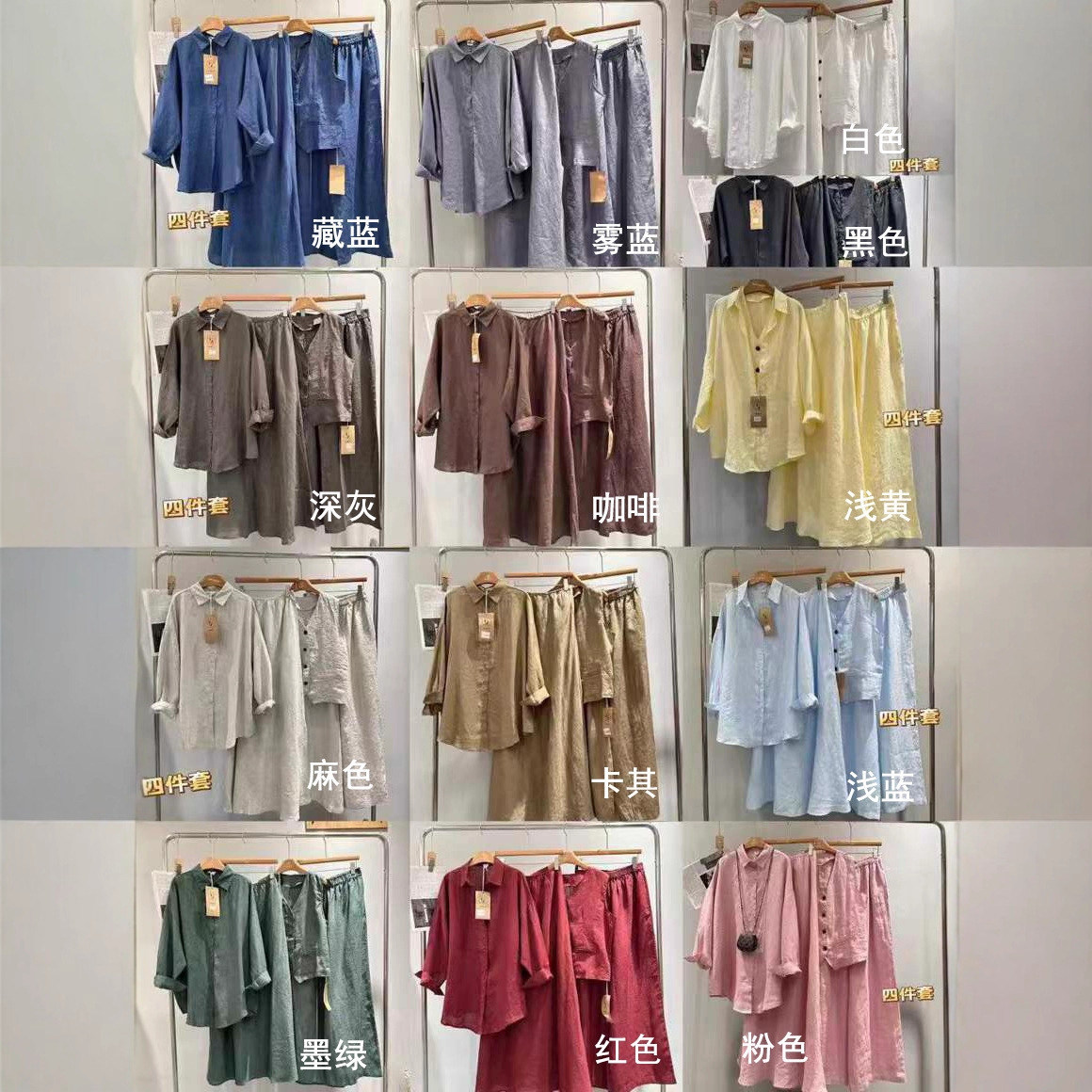 cz250688亚麻减龄宽松百搭四件套新品文艺气质衬衣马夹+半裙裤子