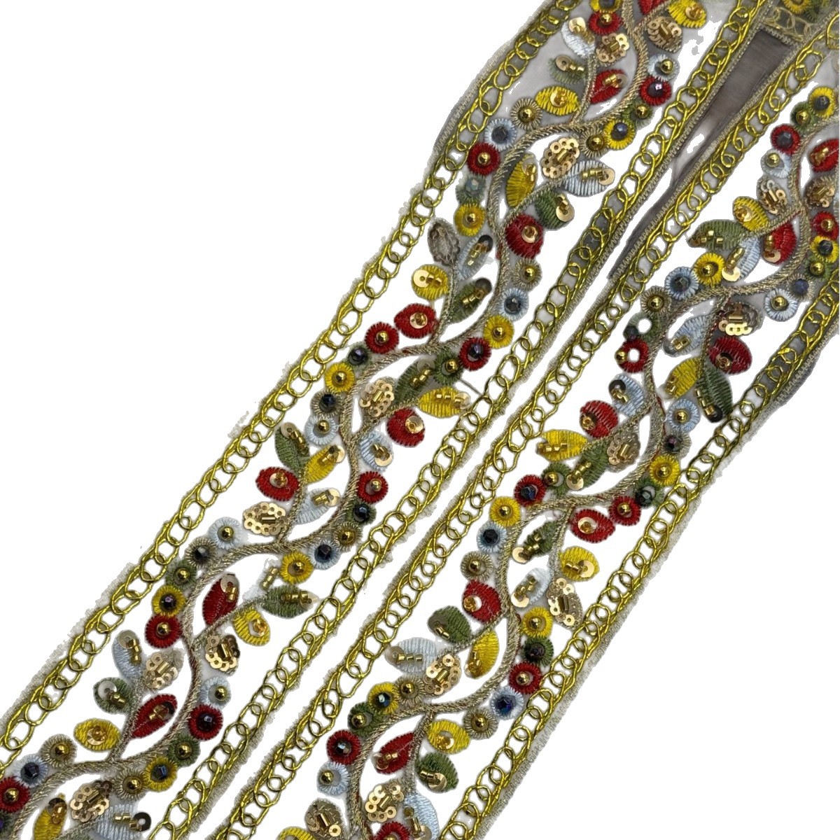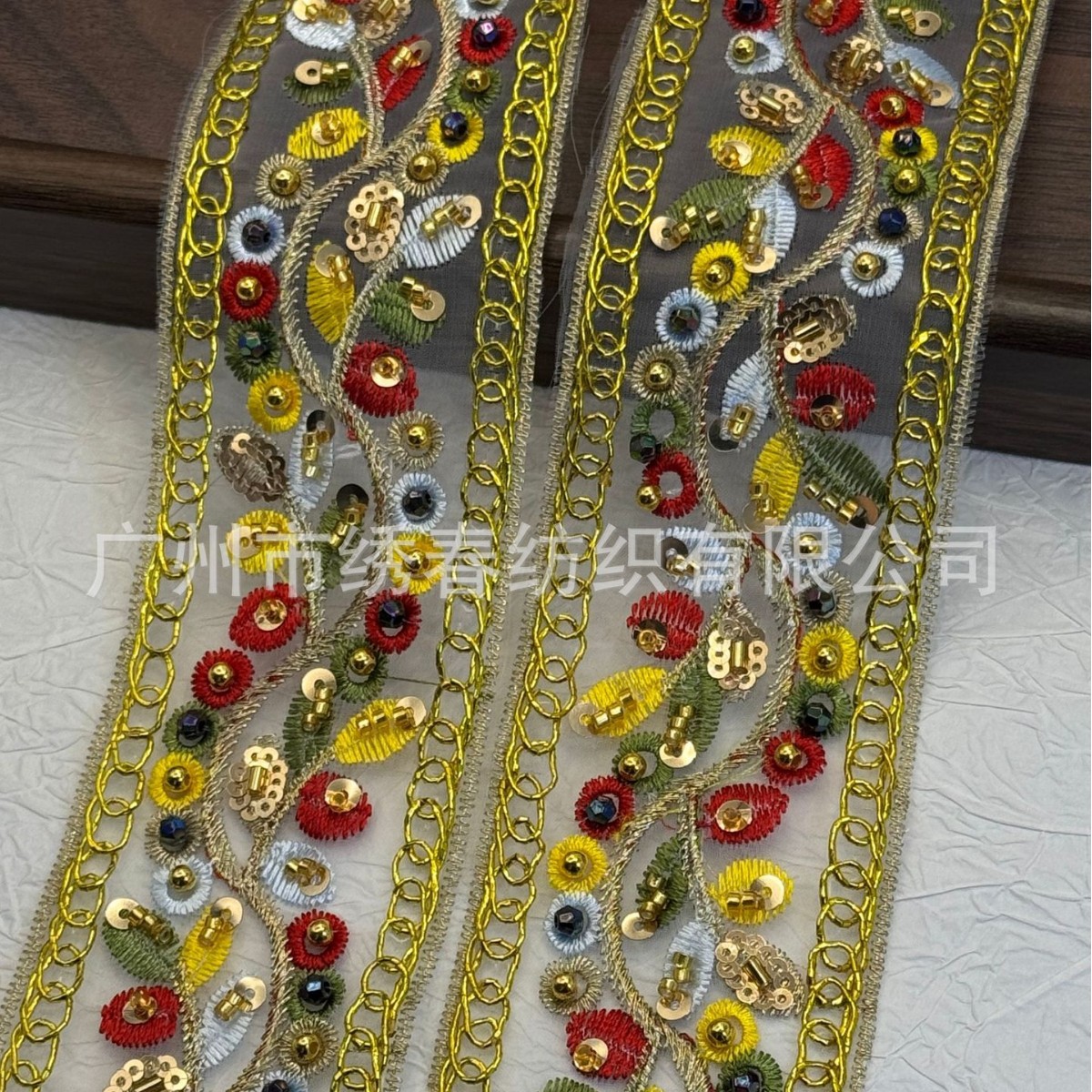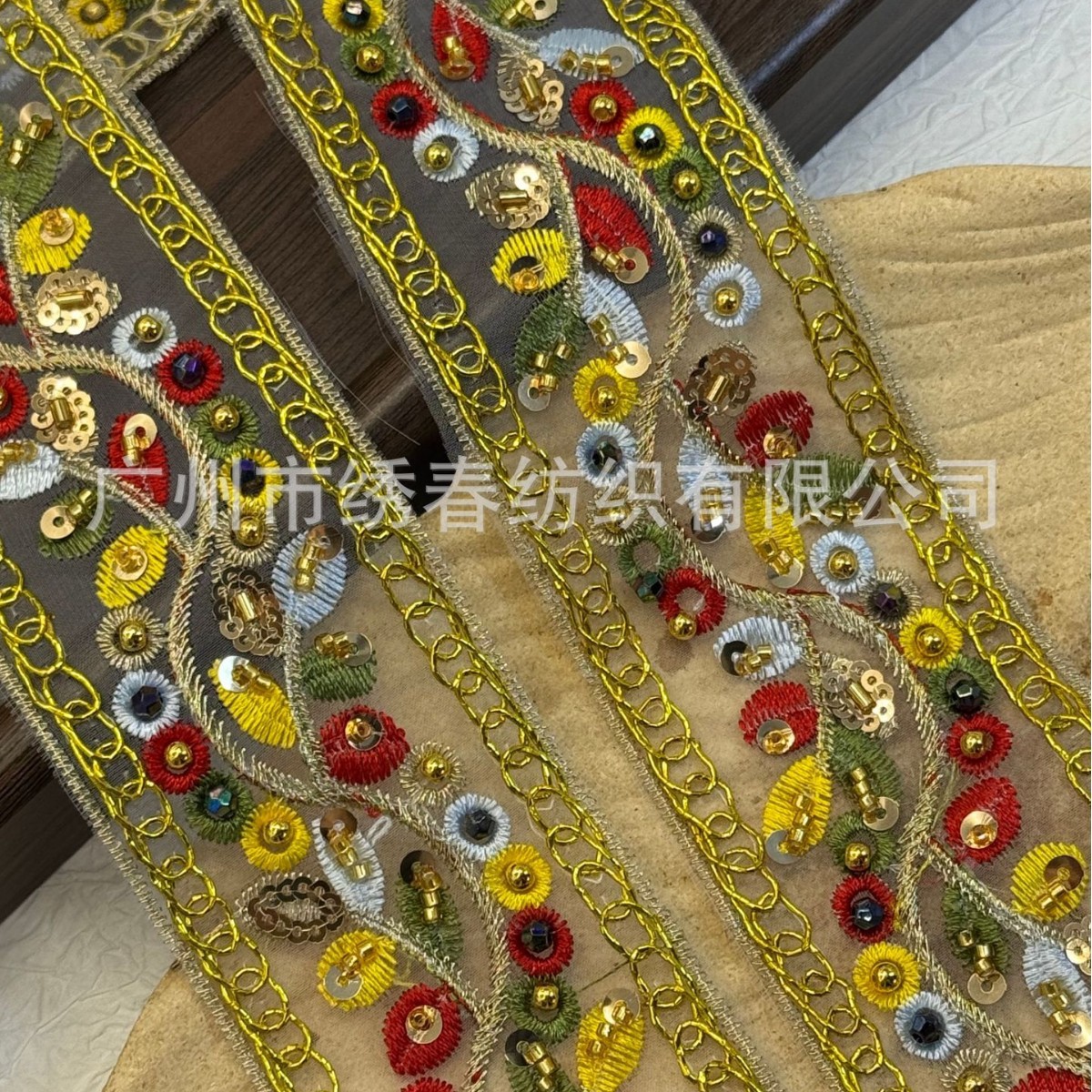 民族风手工钉珠花边 服装辅料领口袖口装饰彩色亮片网纱刺绣条码