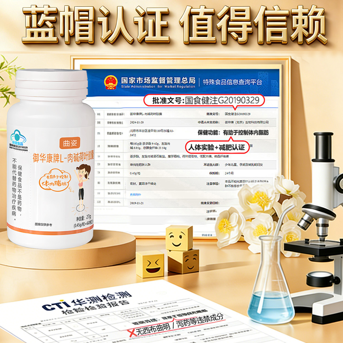 【蓝帽认证】左旋肉碱茶多酚减肥压片糖果控食司美胶囊蓝帽保健品