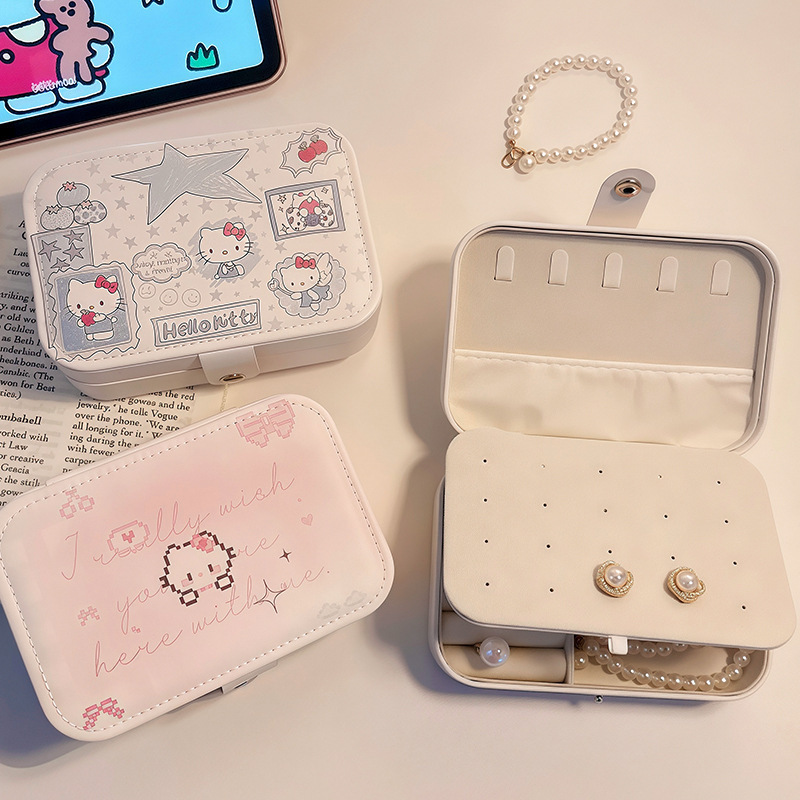 2026新款可爱首饰盒卡通印花大容量便携耳钉项链戒指饰品收纳盒