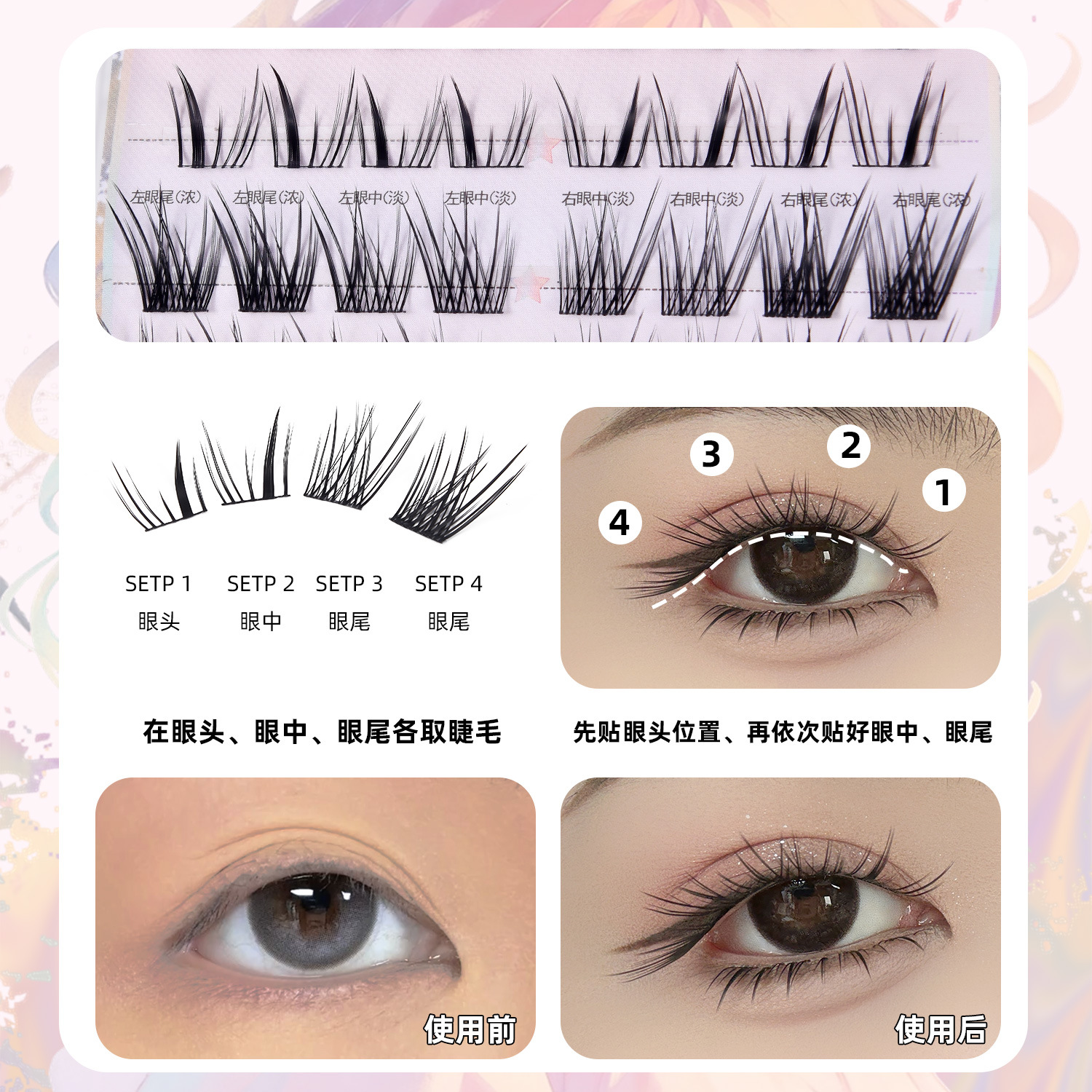 烟柔小天使假睫毛狐系斜飞婴儿弯组合免胶睫毛上镜浓密眼尾拉长
