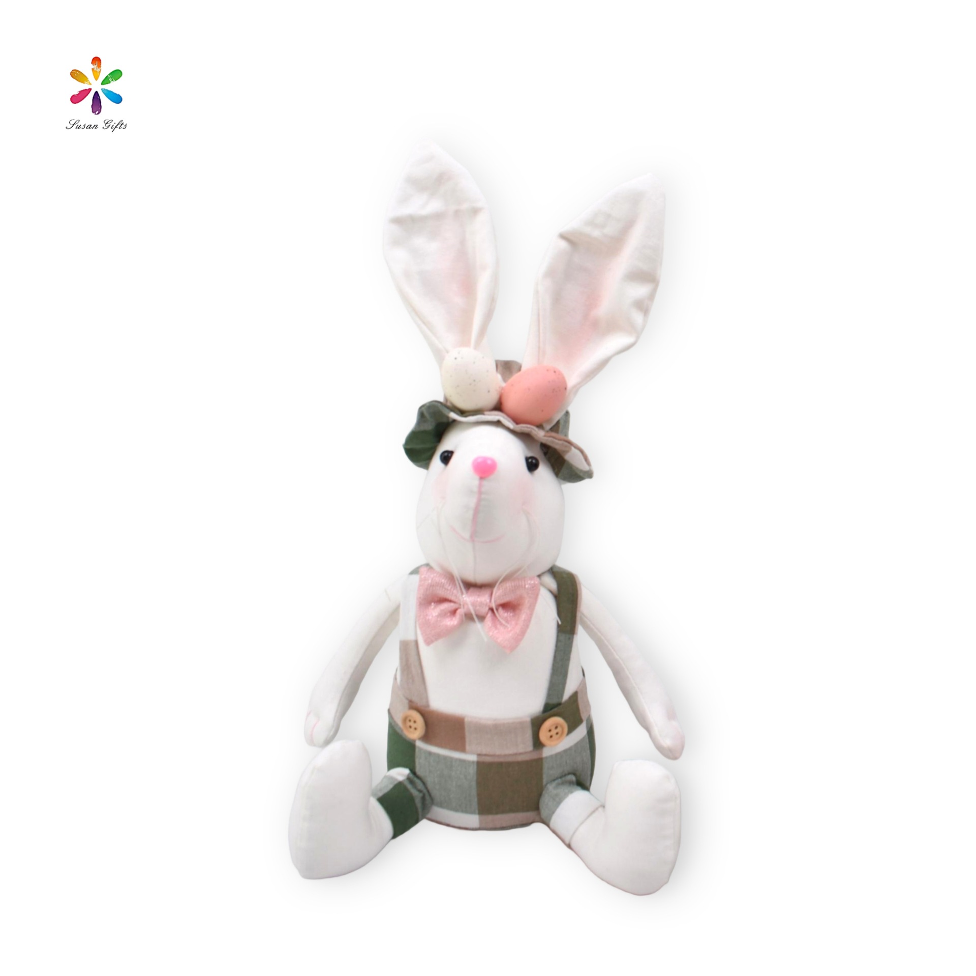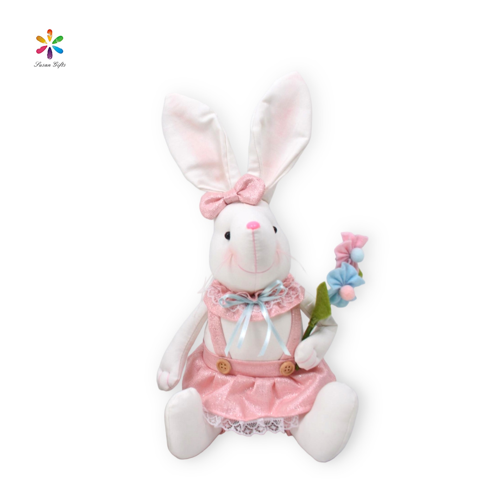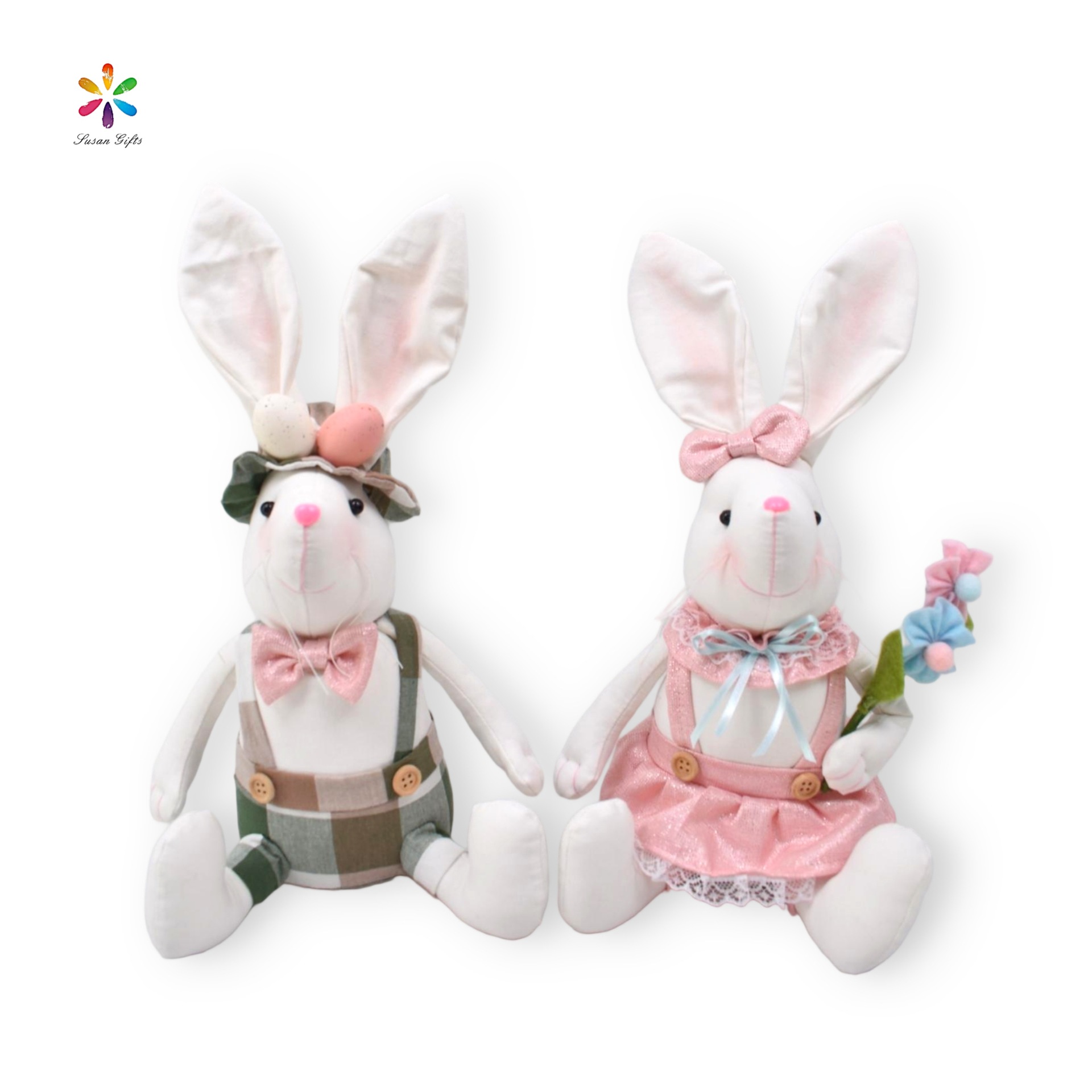 卡通可爱白色情侣粉彩蛋花朵兔子节日礼物坐姿短腿复活节彩蛋挂件