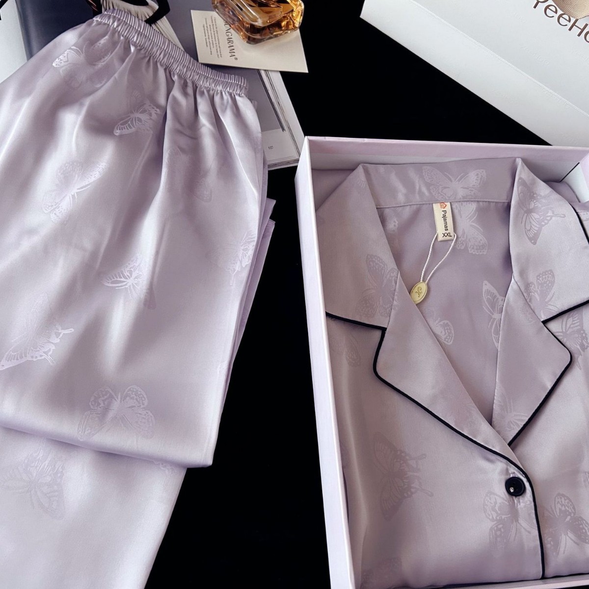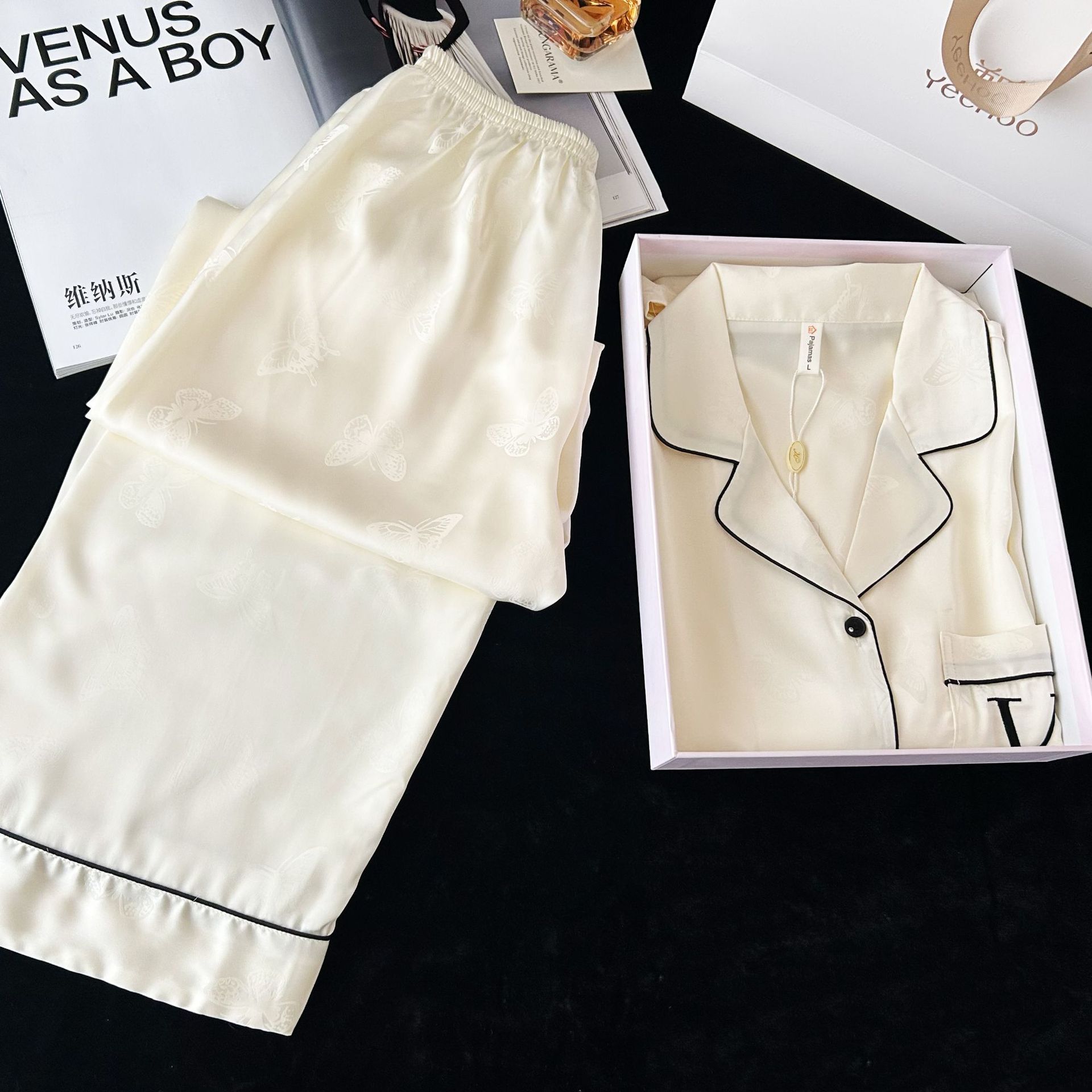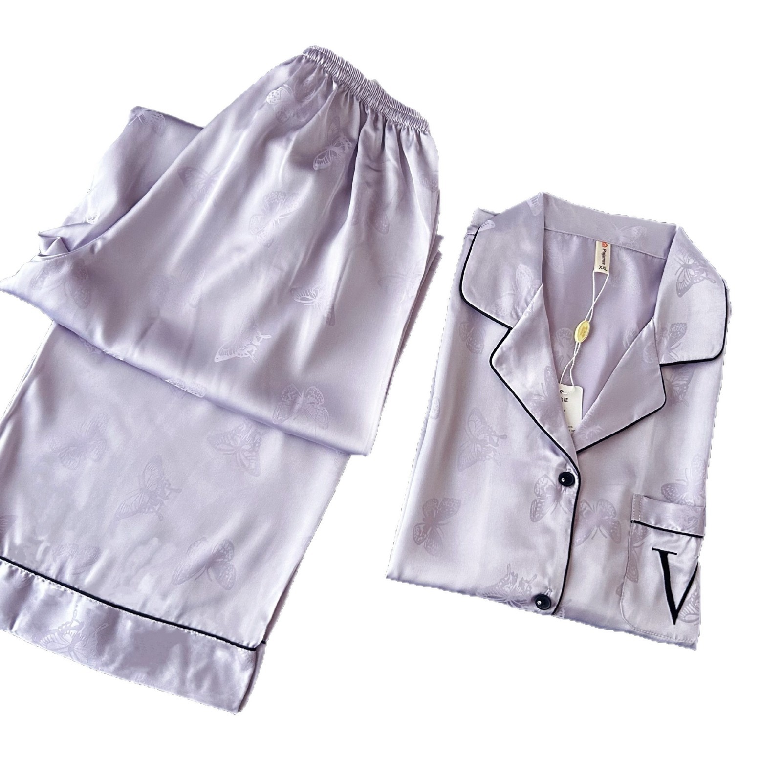 2026新跨境蝴蝶印花高级冰丝睡衣女春秋季长袖长裤套装家居服批发