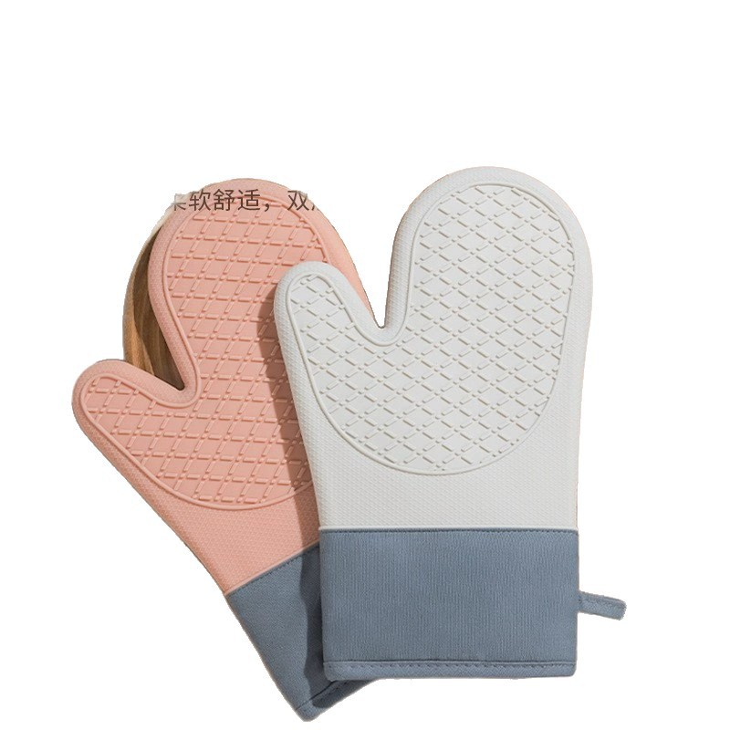 现货硅胶手套加厚加棉双层隔热手套微波炉烤箱烘焙用花布二指手套