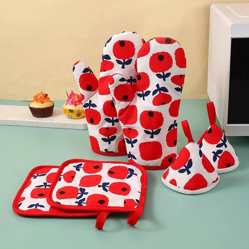 规格烤箱手套苹果花大红色(1只)