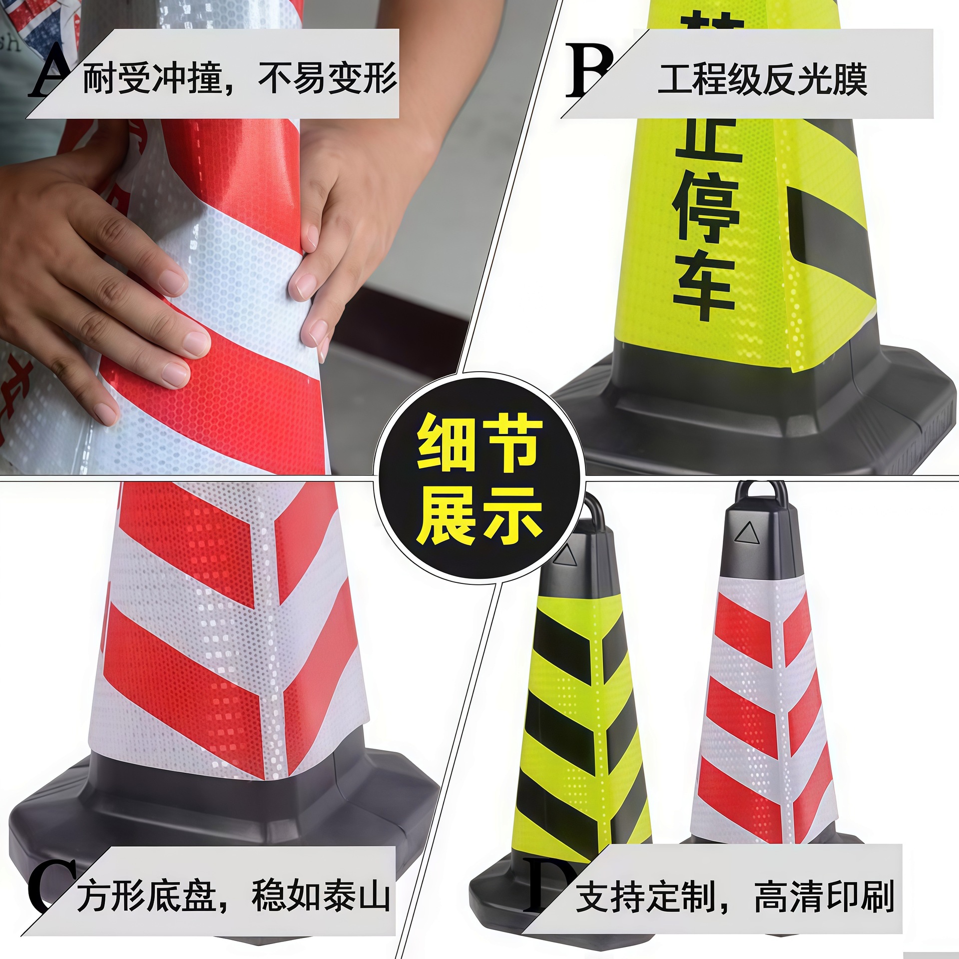 70cm塑料路锥反光路障提环雪糕筒锥形桶隔离墩道路安全施工反光锥