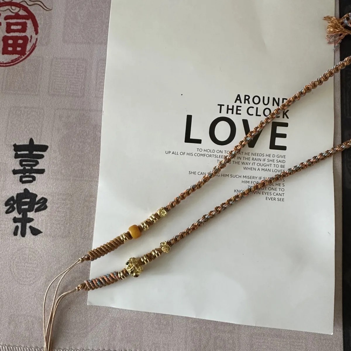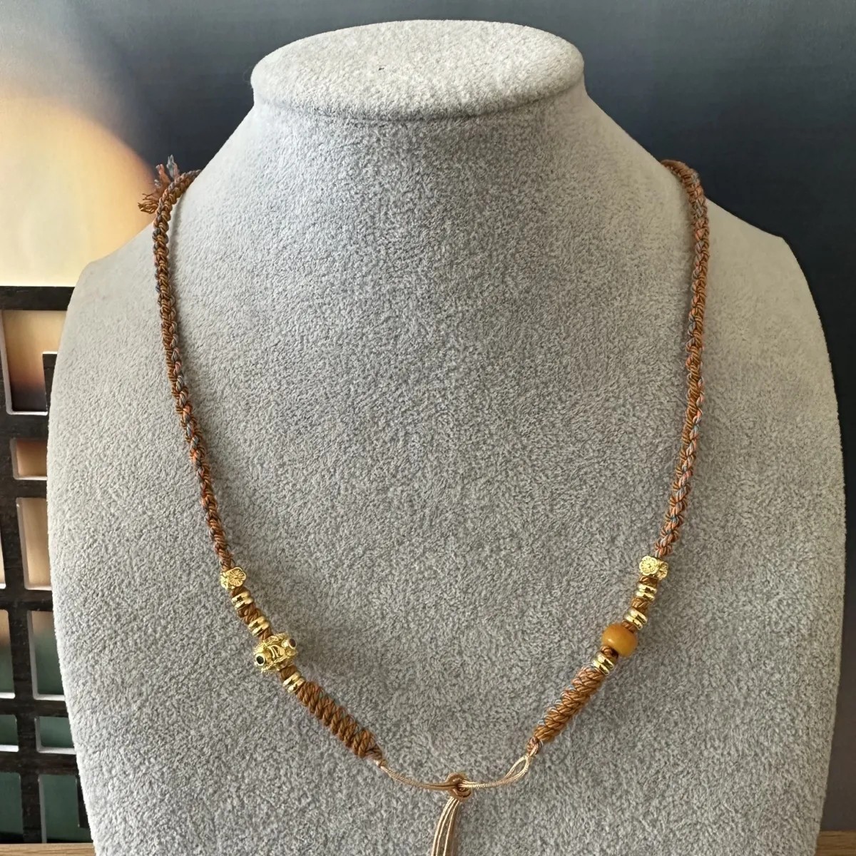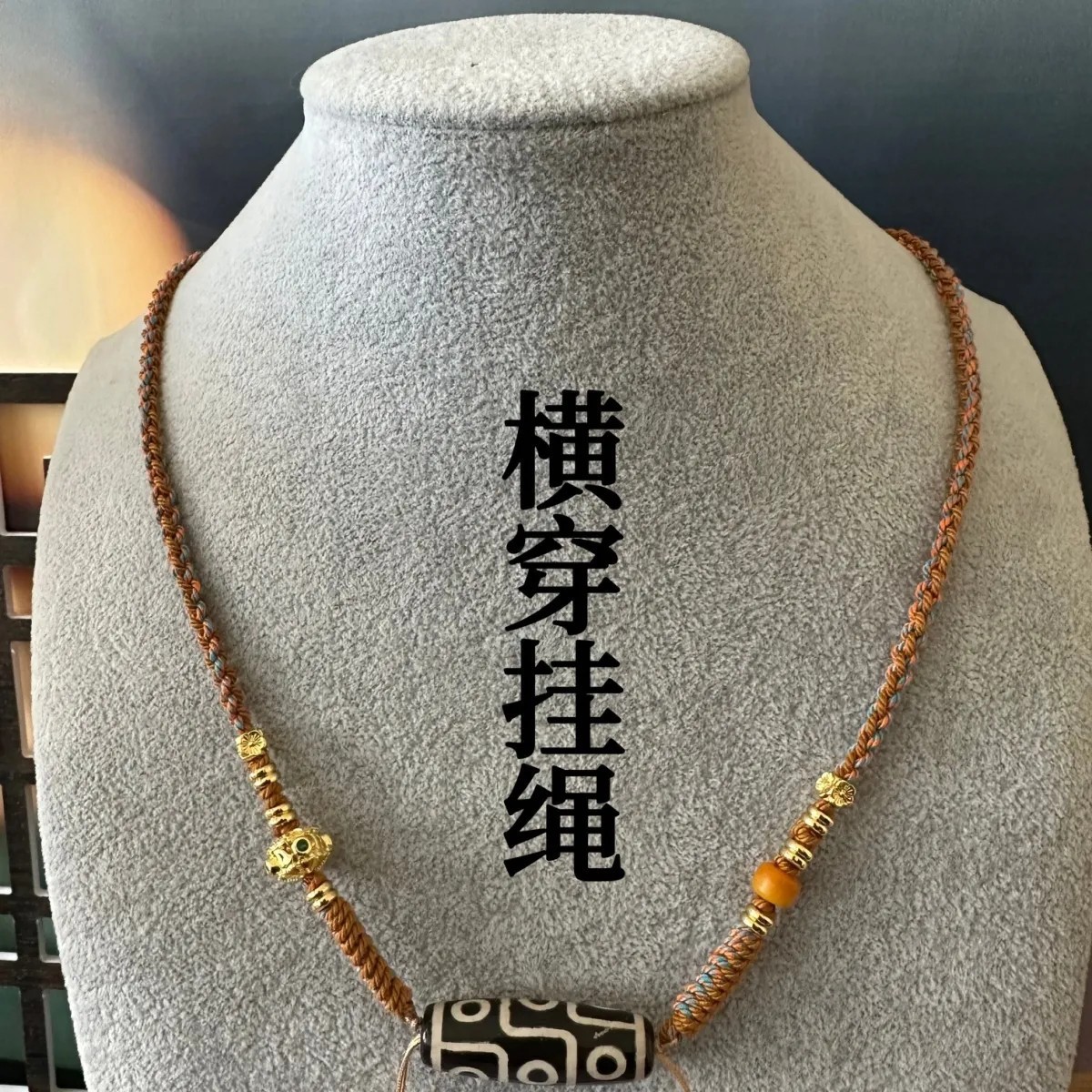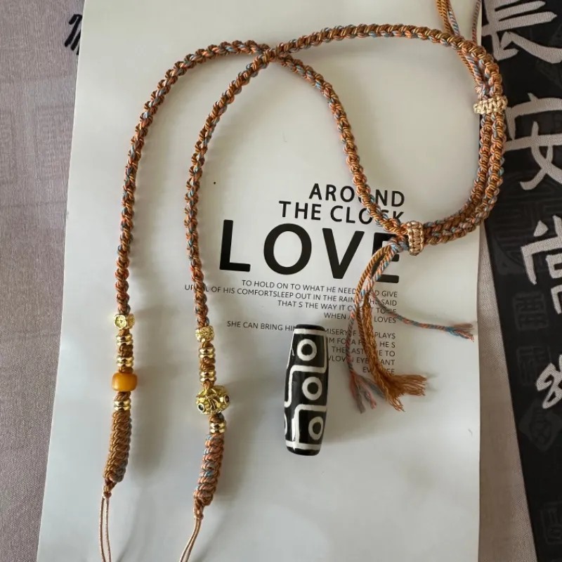 原创横穿天珠蜜蜡手搓棉半成品项链手工编织绳中国风锁骨链