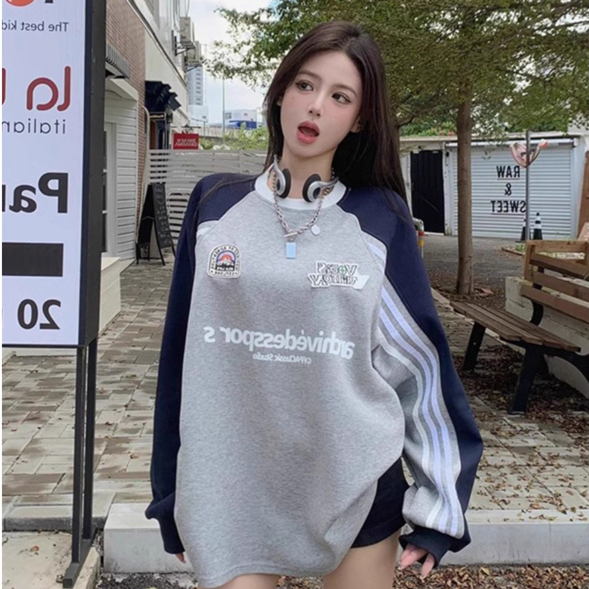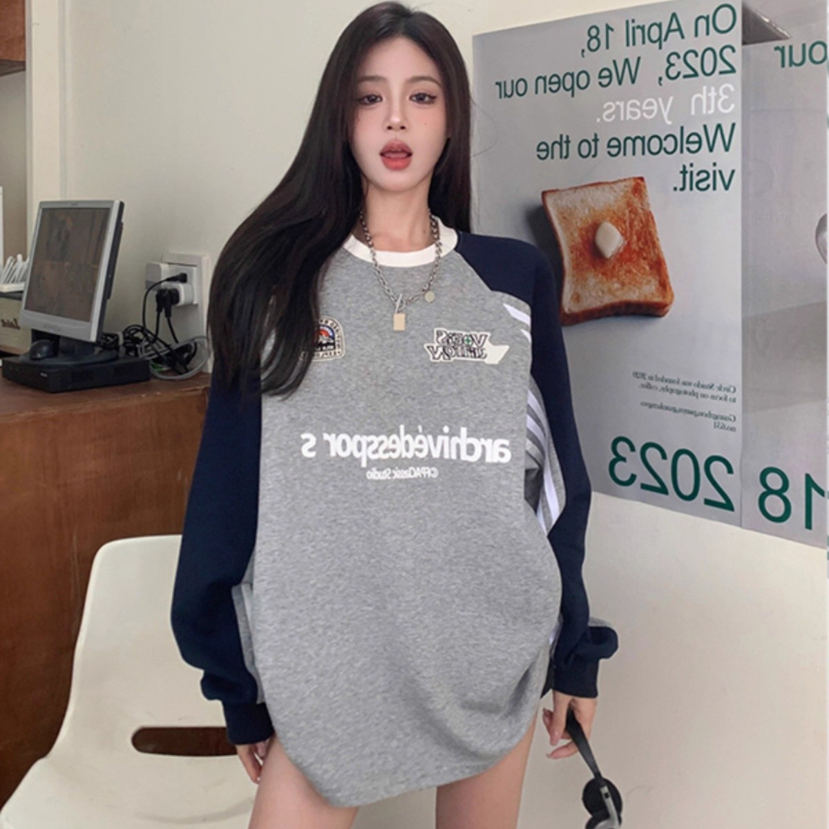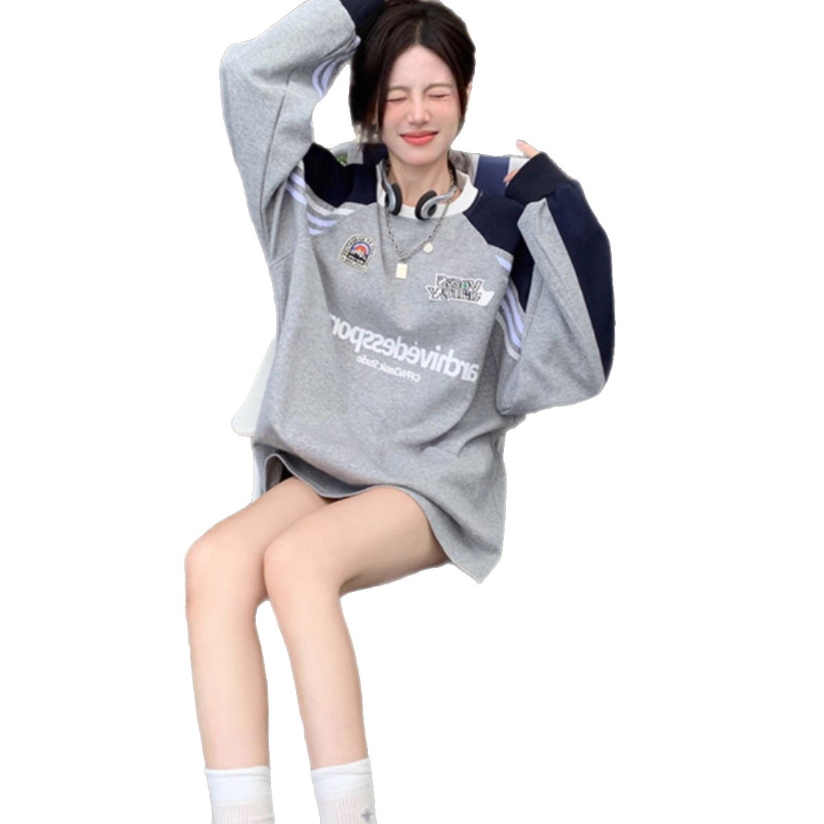 【原版做工】美插肩长袖圆领卫衣女秋新爆款宽松上衣外套加绒加厚