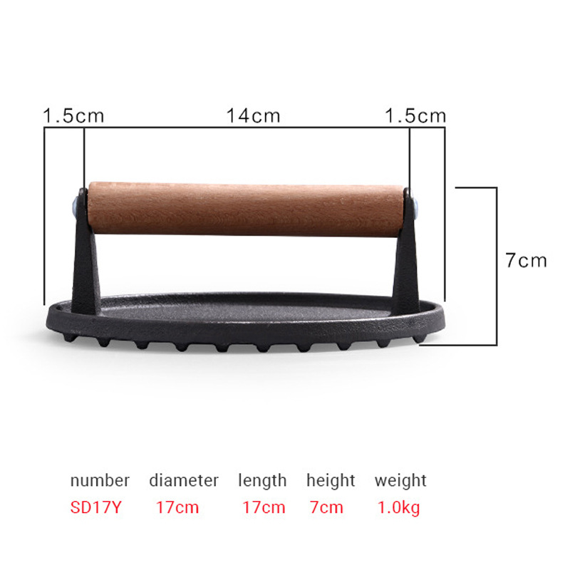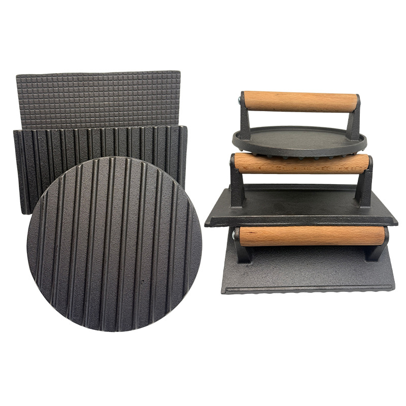 铁板烧鱿鱼煎牛排烧烤肉盘压板商用无涂层生铁铸铁煎肉压肉板小型