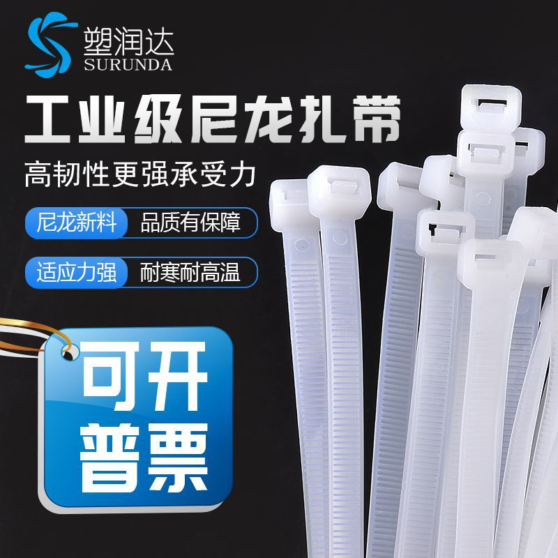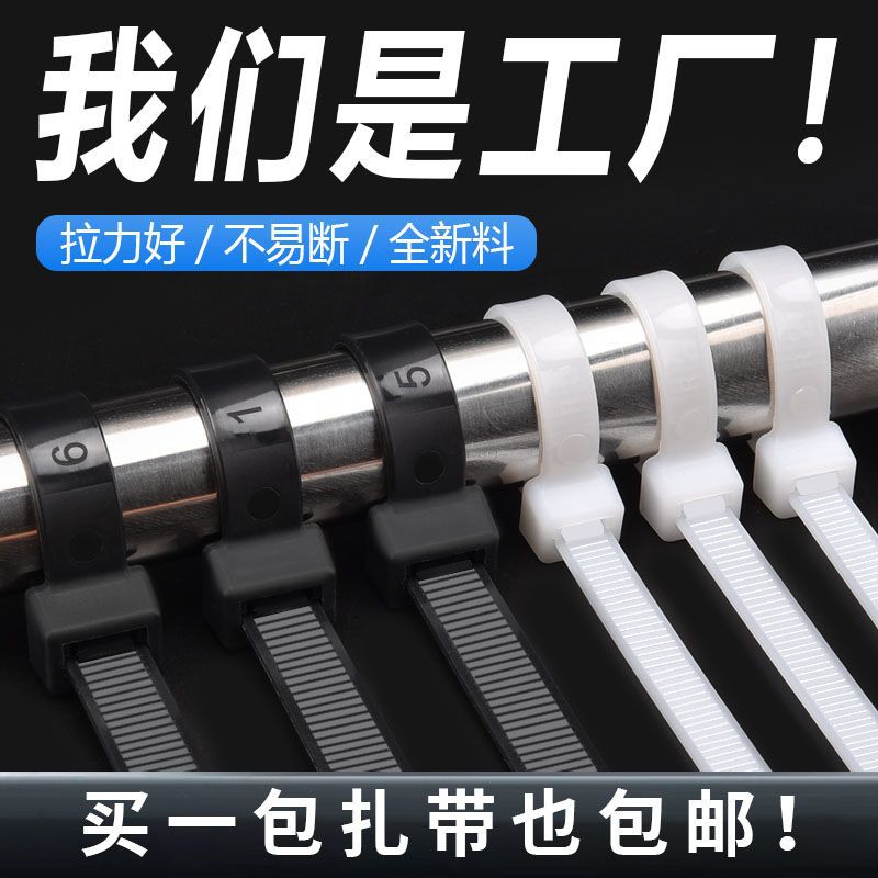 塑料尼龙扎带拉紧器强力束线带固定捆绑带自锁式卡扣黑白色扎线带
