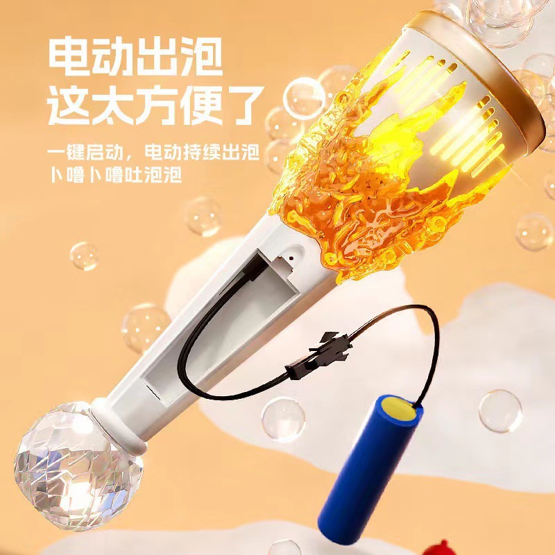 全自动儿童新款电动火炬泡泡机多孔吹泡泡炫彩声光手持泡泡棒玩具