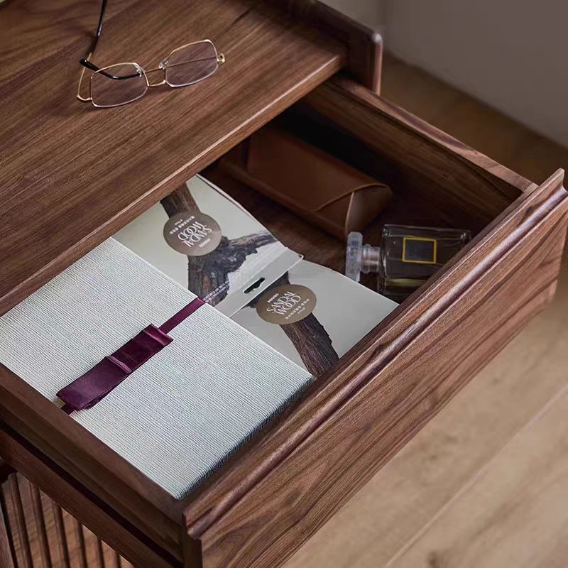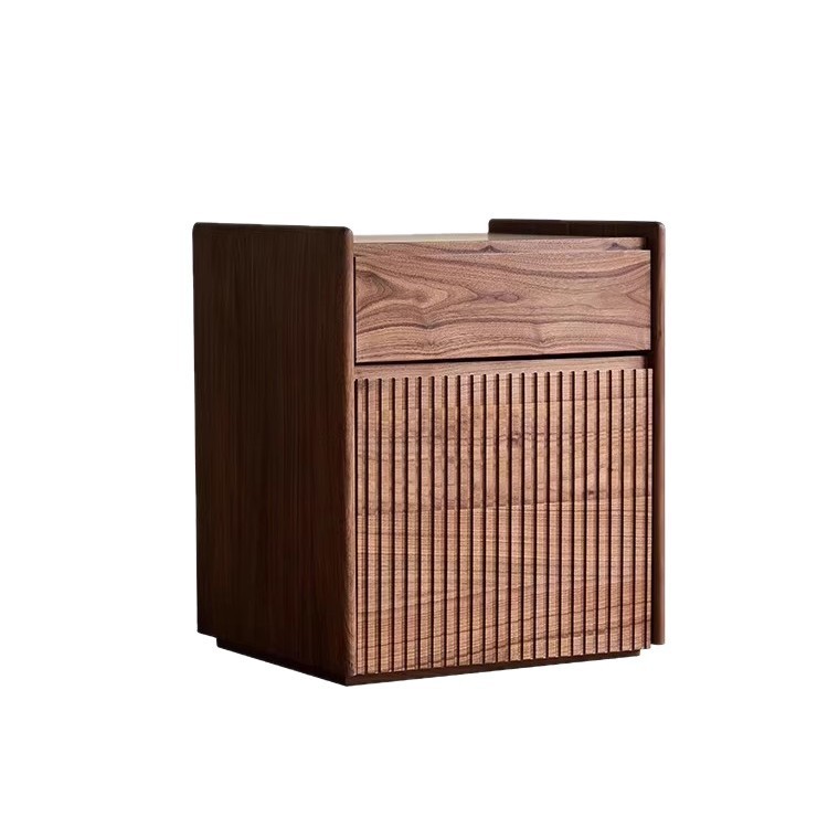 北欧床头柜黑胡桃木原木卧室储物柜现代简约床边柜日式轻奢收纳柜