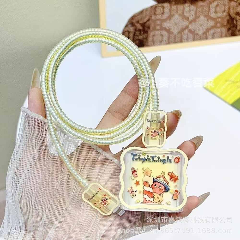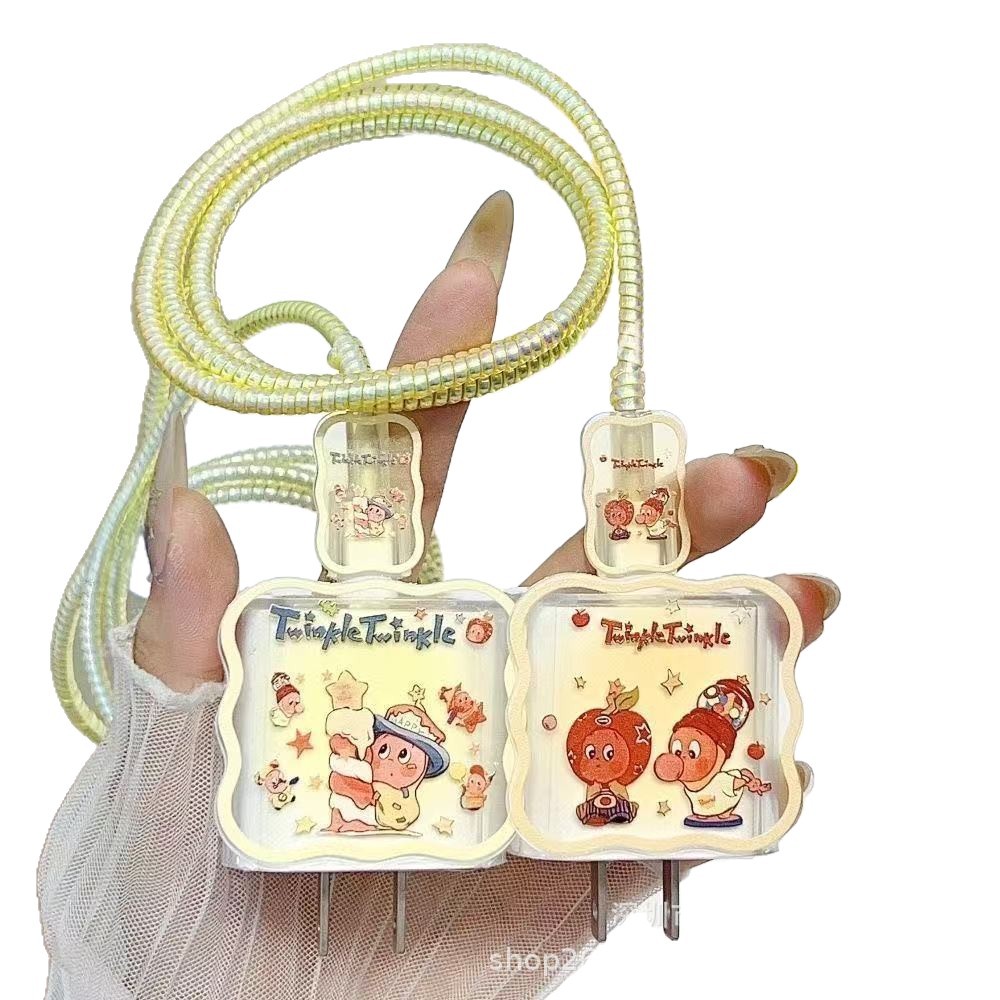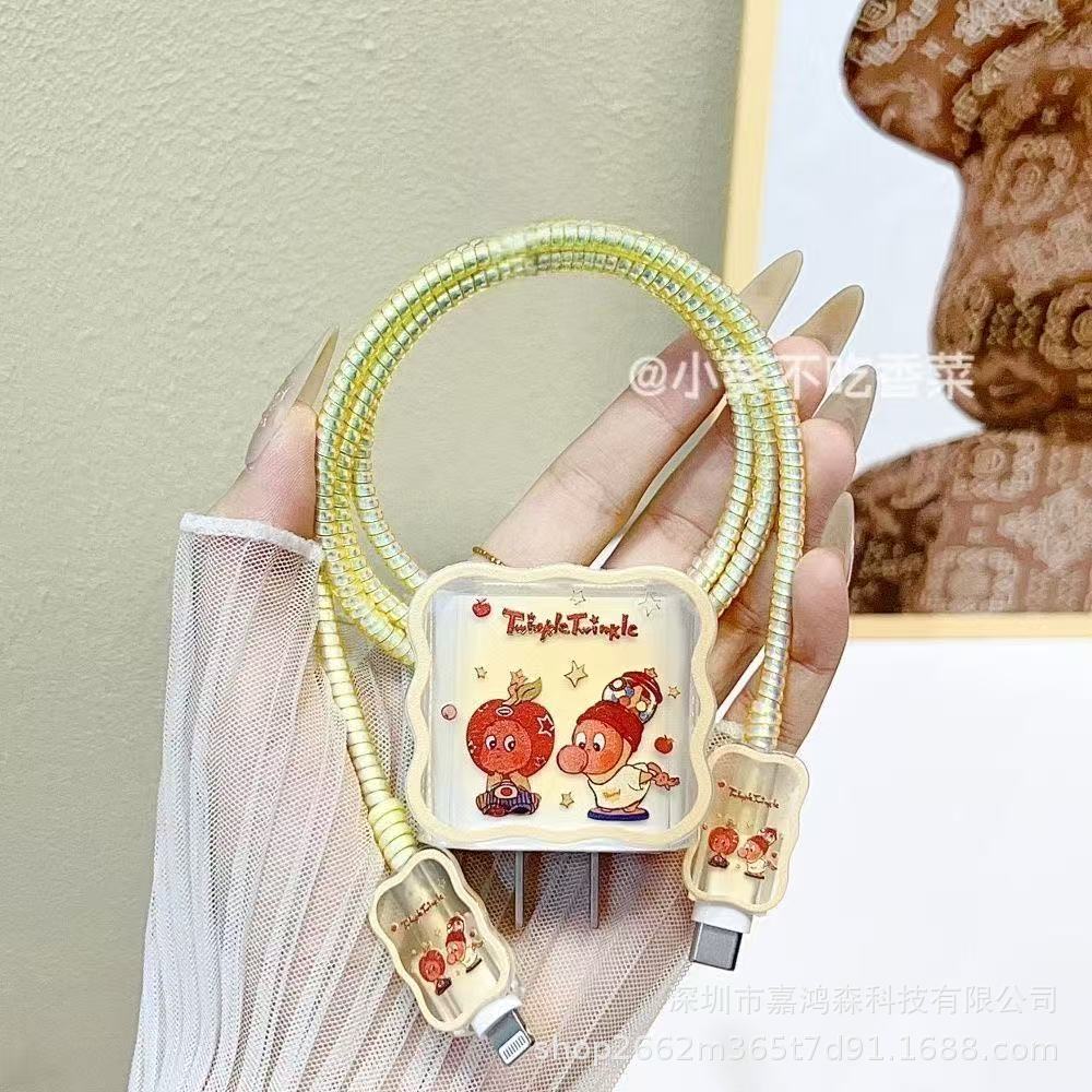波浪渐变黄适用苹果16充电器保护套20w瓦iPhone15数据线保护绳防