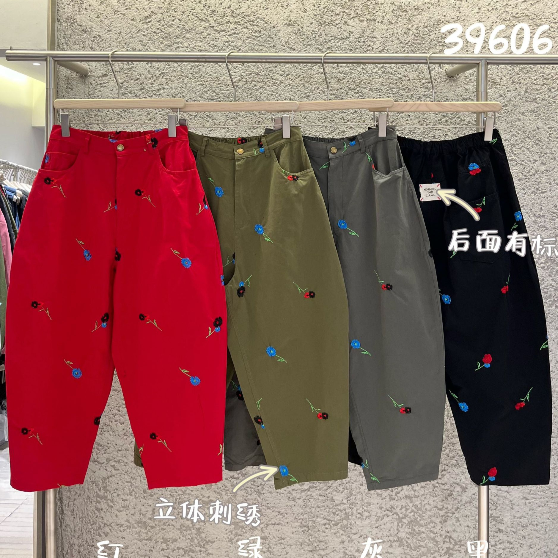 WJ2026早春多巴胺刺绣复古慵懒风刺绣阔腿裤松弛感休闲裤外贸小众