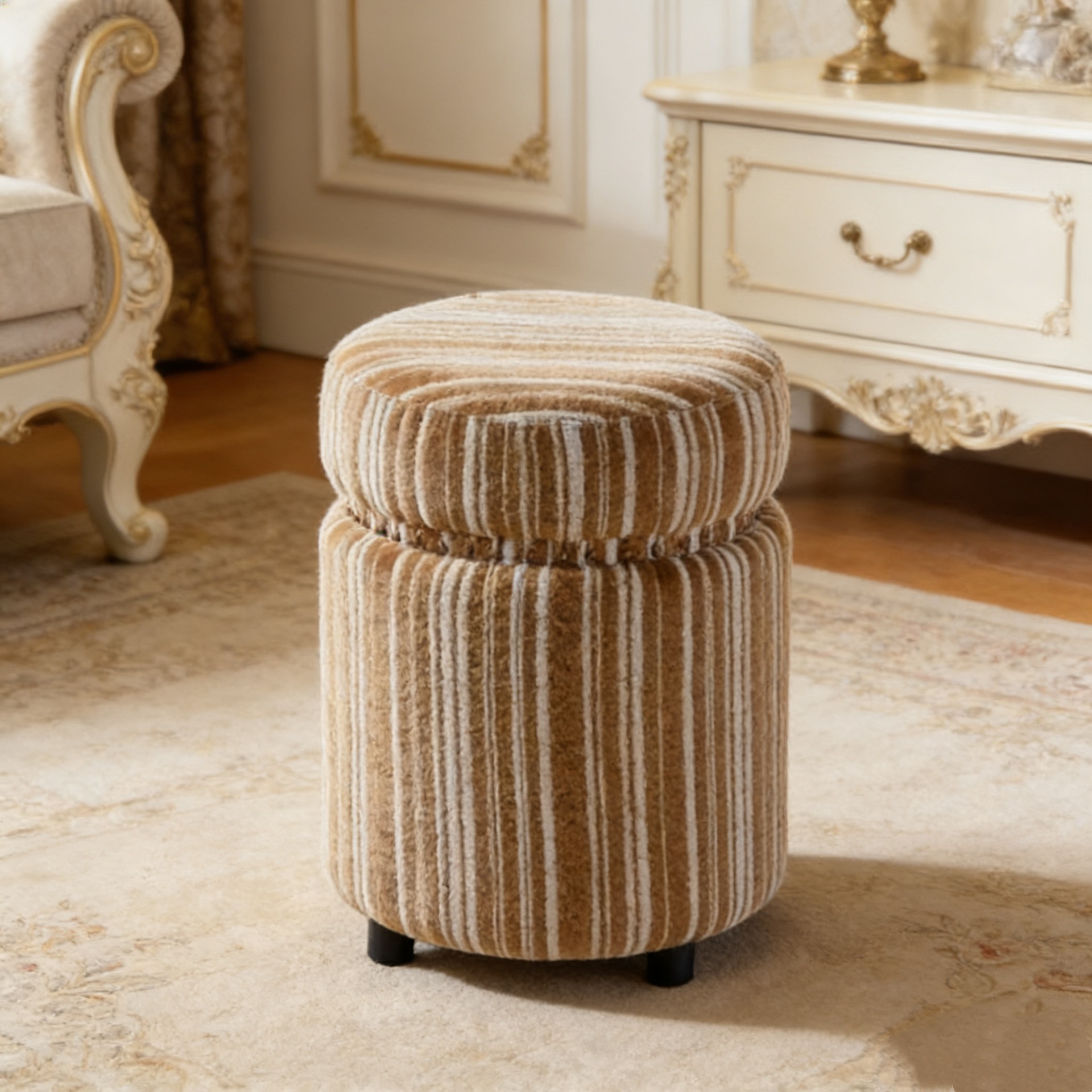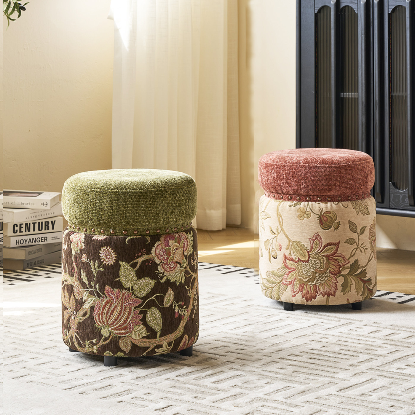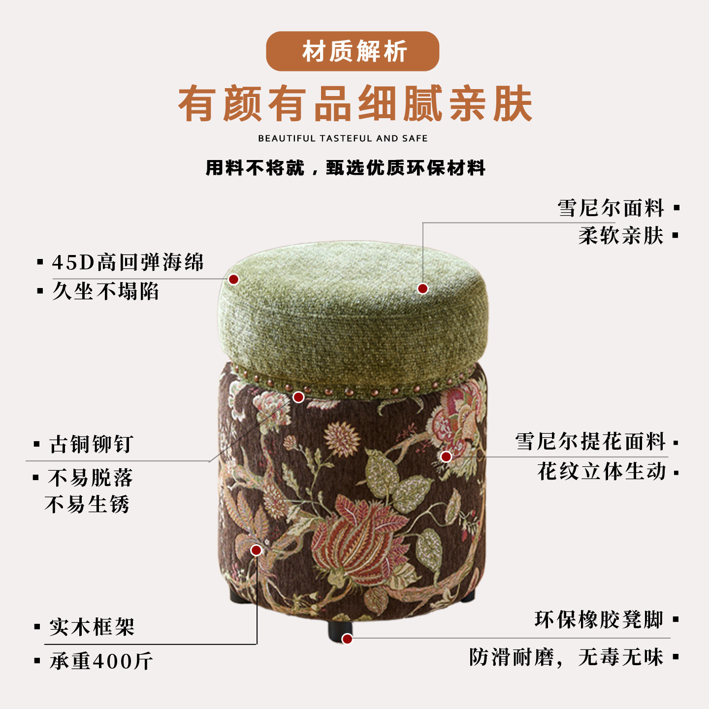复古提花圆凳实木卧室软坐凳家用客厅换鞋凳轻奢高级感矮凳化妆凳