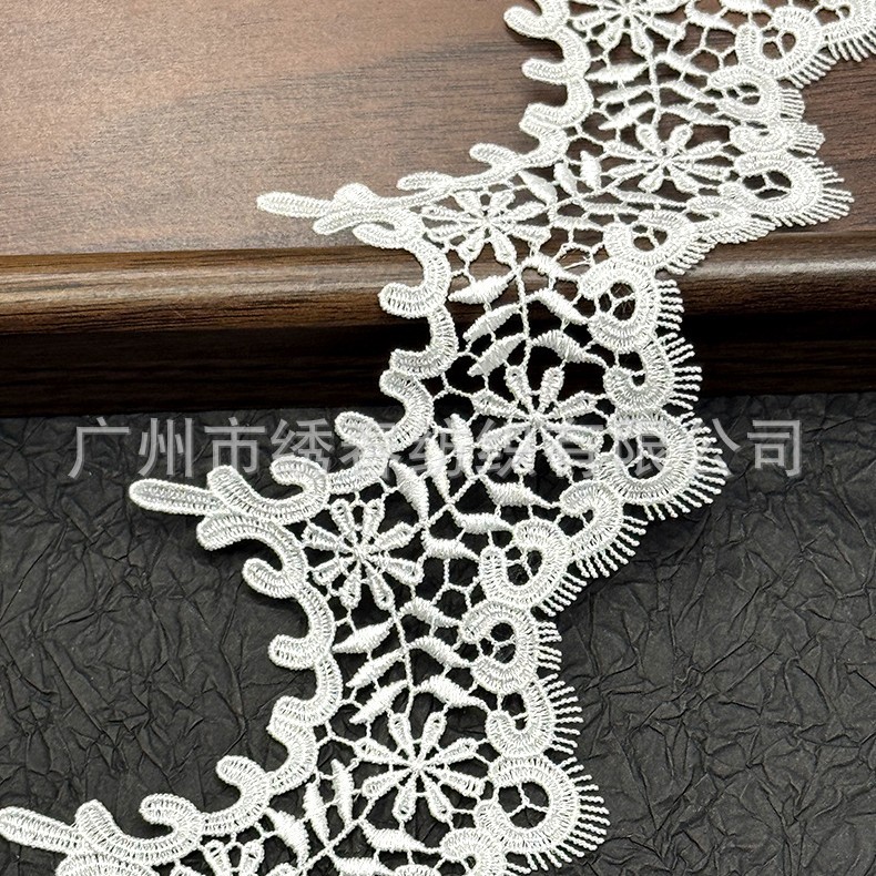 法式刺绣花边 涤光花边辅料 洛丽塔婚纱辅料白色DIY女装单边花边