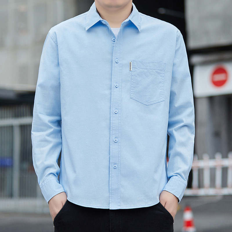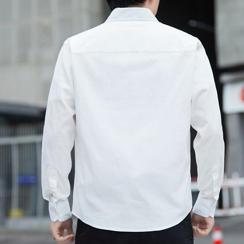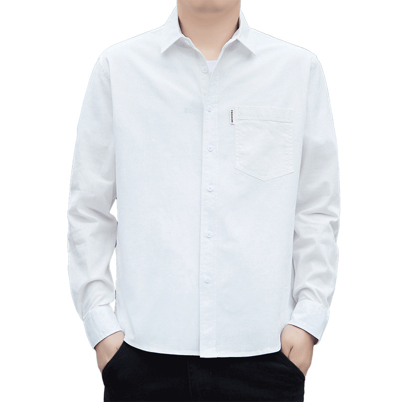 仿麻抗皱长袖衬衣男春秋季商务休闲男装时尚免烫男士上衣百搭外套