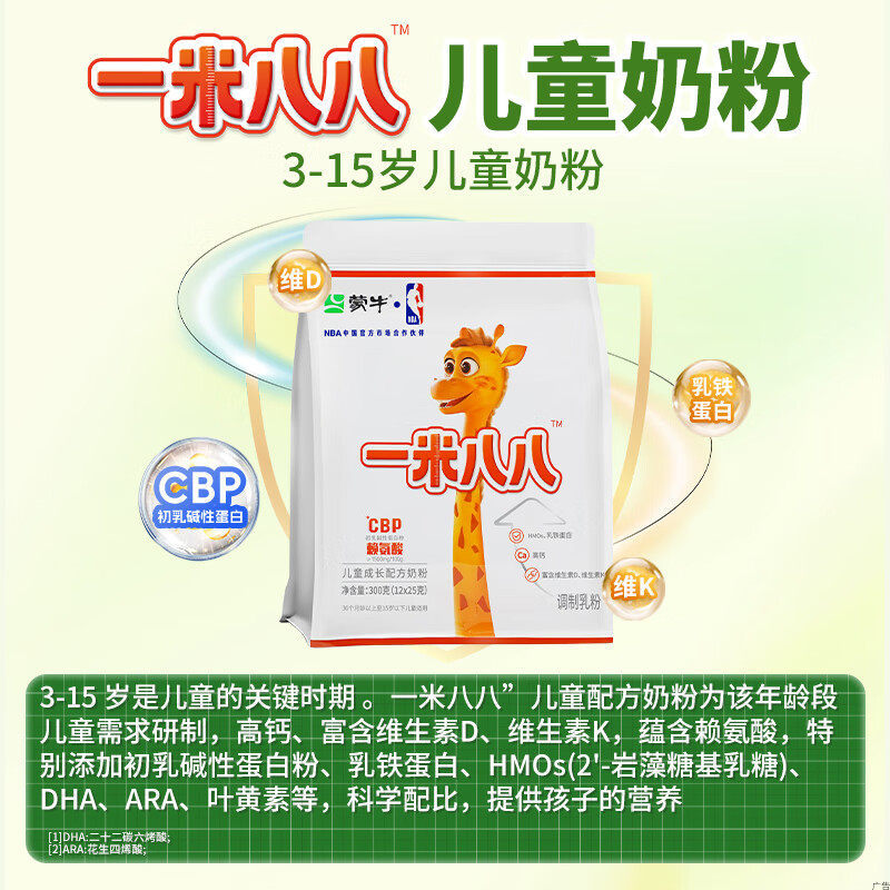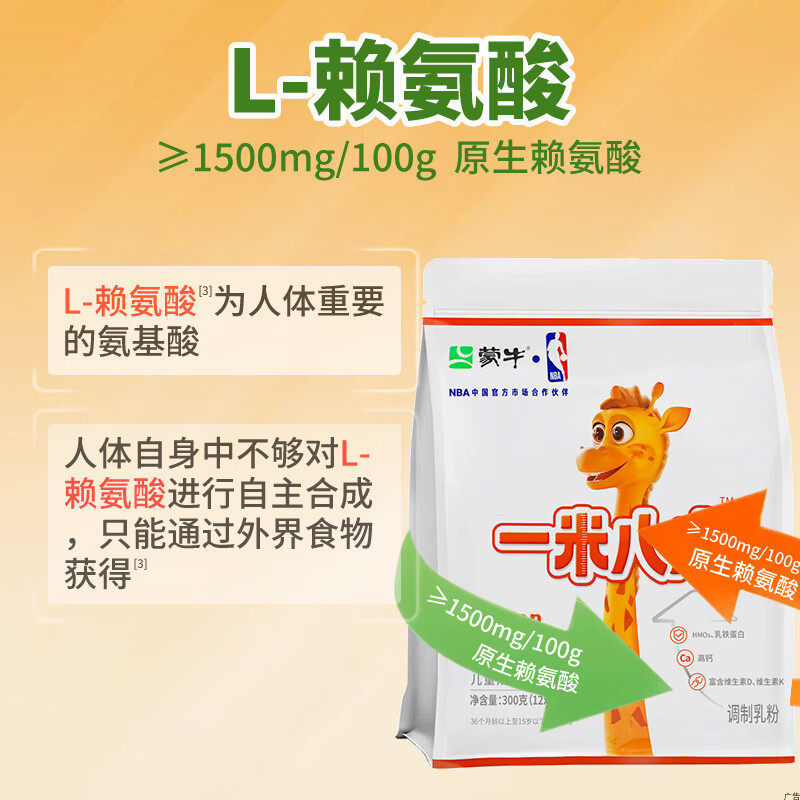 儿童奶粉3-15岁中小学生CBP赖氨酸高钙牛奶粉300g*袋