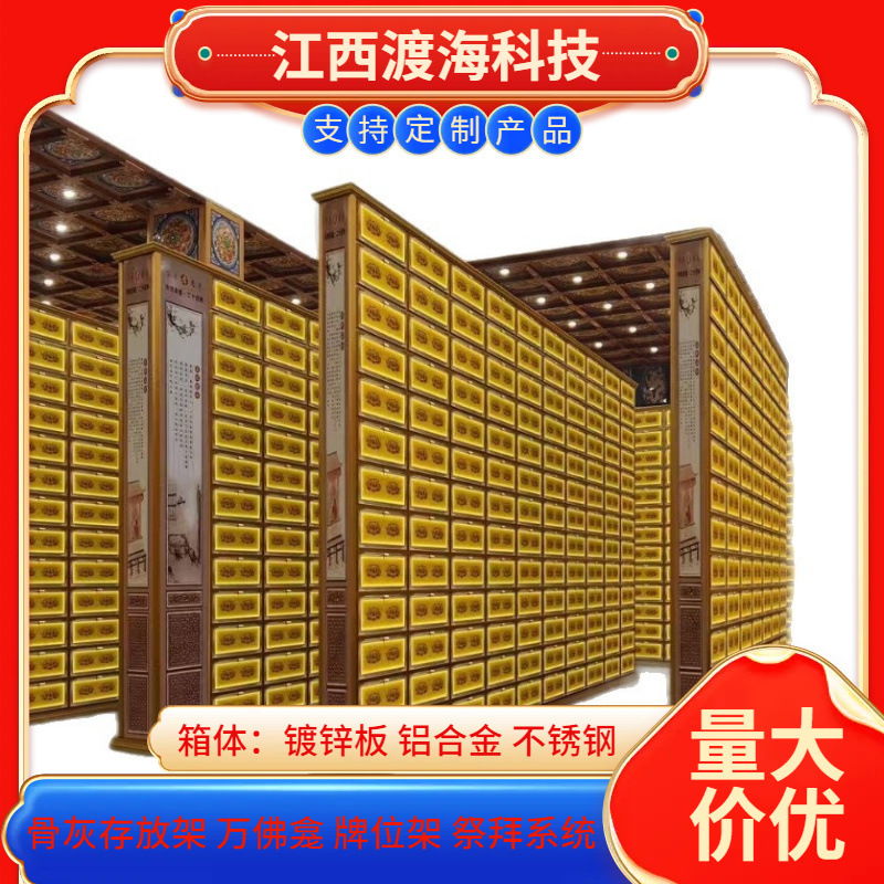主营产品:骨灰存放架,骨灰盒寄存架,福寿架,万佛龛,牌位架,殡仪馆祭拜系统,寺院智能化管理系统、龙骨吊顶、智能骨灰寄存架