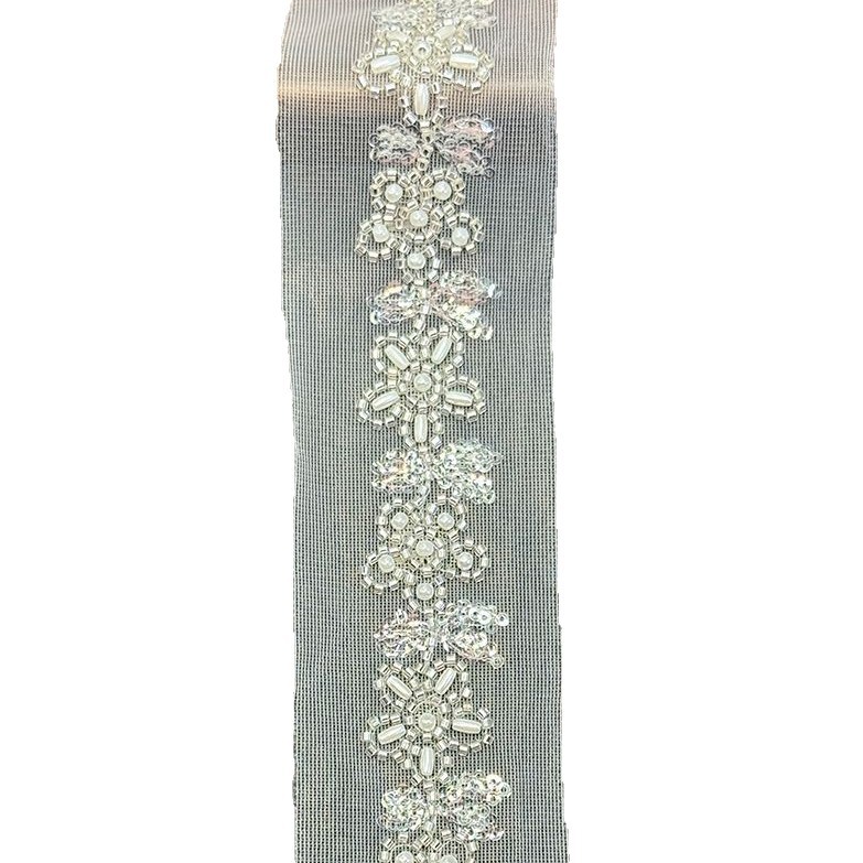 白色网纱花卉珠管花边 小香风外套门襟袖口装饰辅料DIY手工配饰