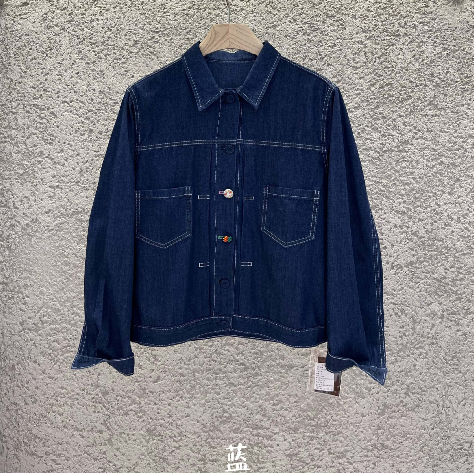 WJ2026早春松弛感复古牛仔外套女 彩色纽扣双口袋上衣 外贸欧美风