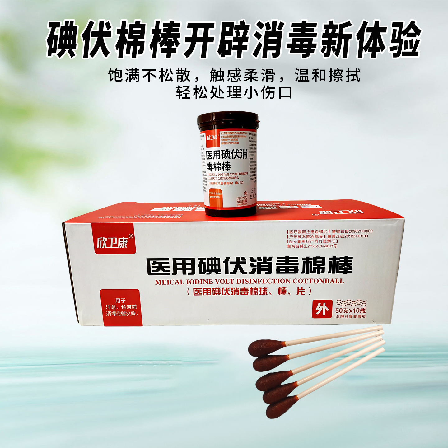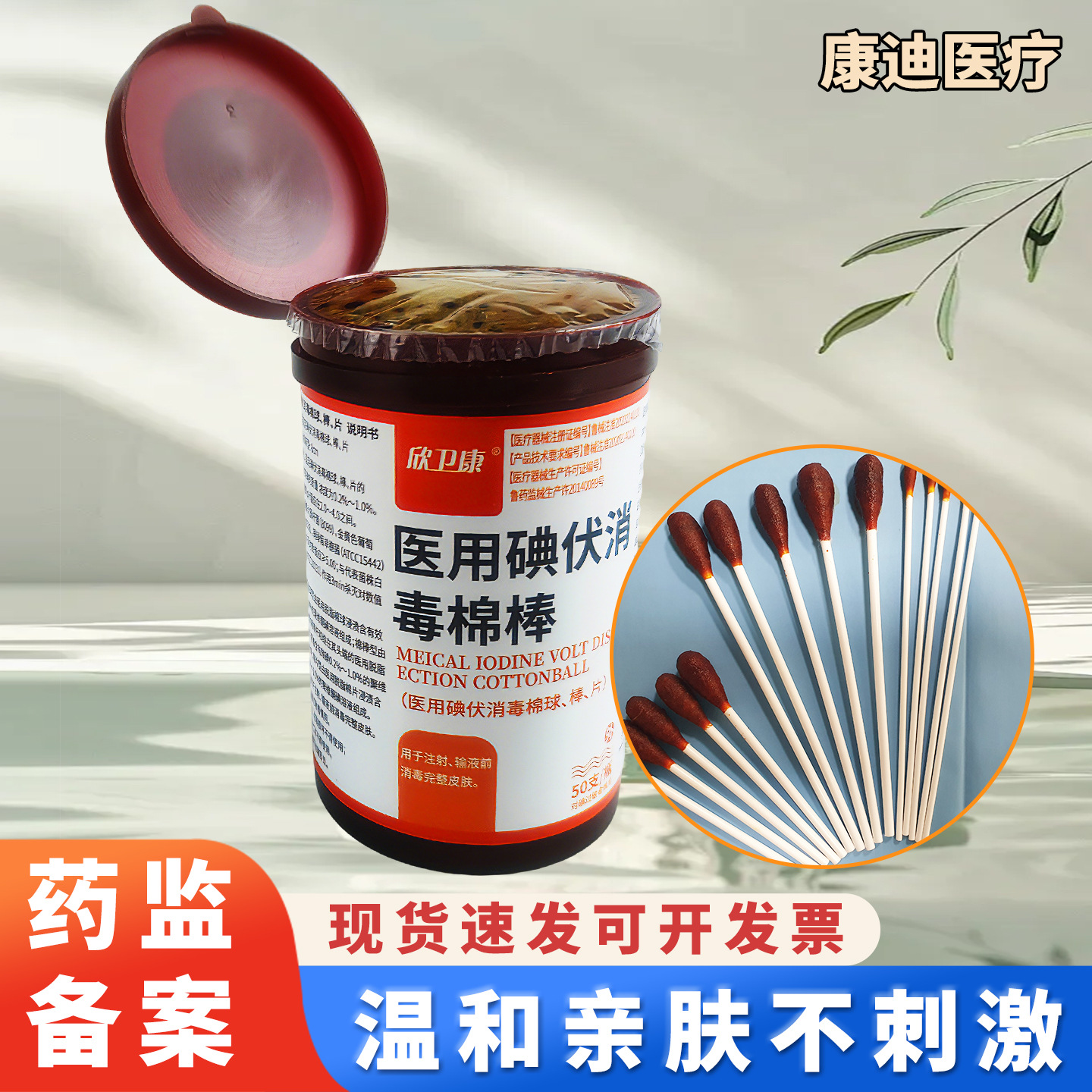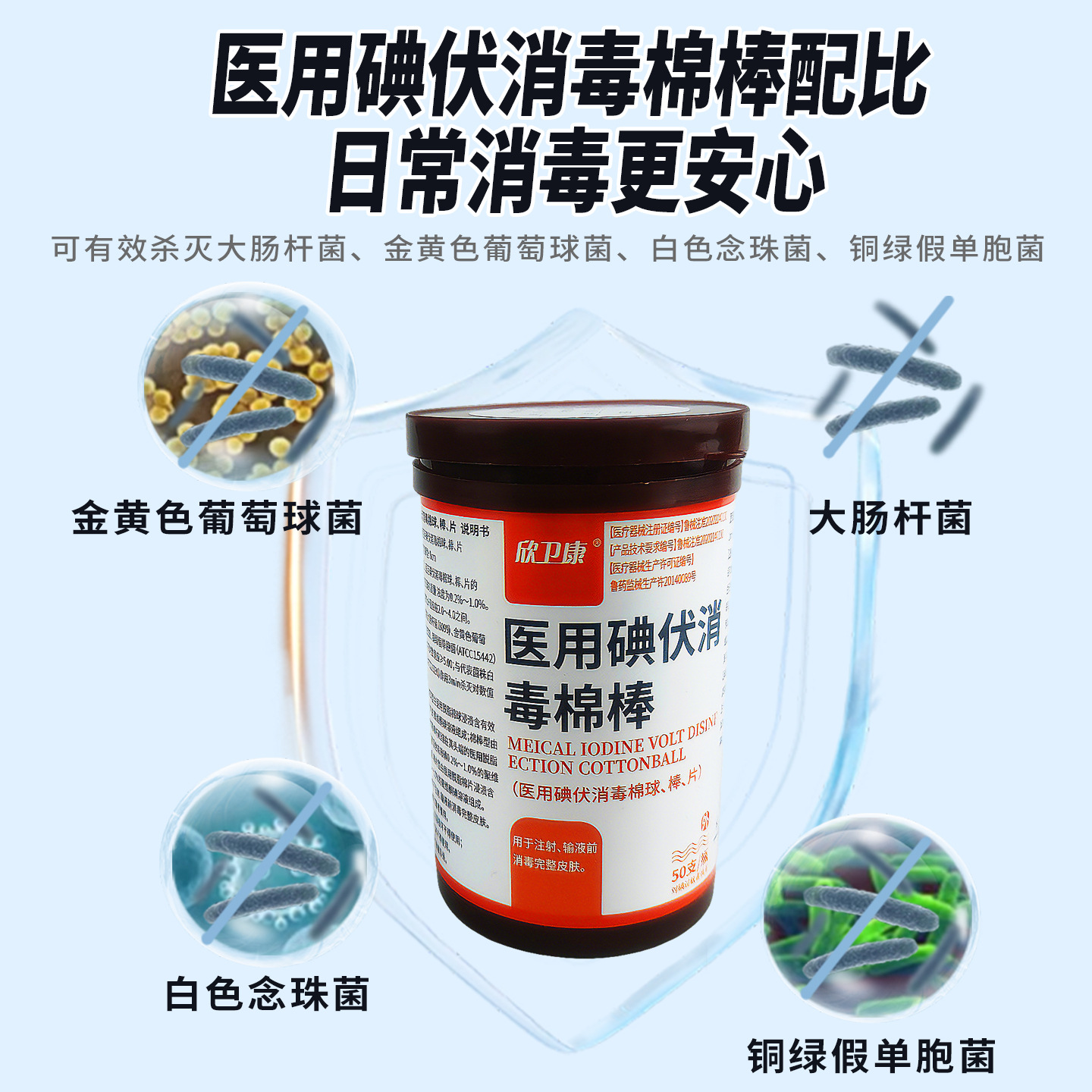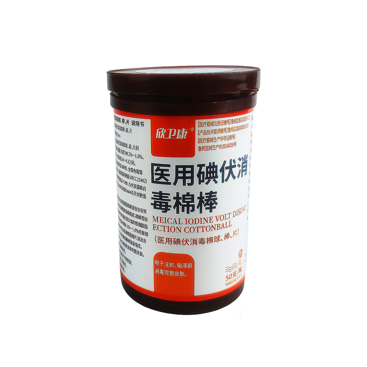 医用家用便携式50支罐装伤口杀毒消菌皮肤清洁棉签一次性碘伏棉棒