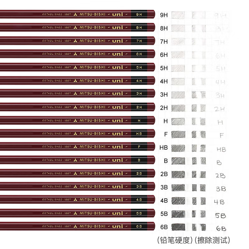 日本原装进口三菱铅笔硬度测试专用铅笔学生素描高精度书写铅笔