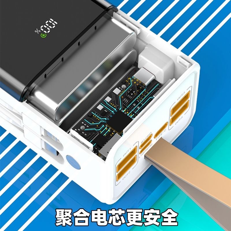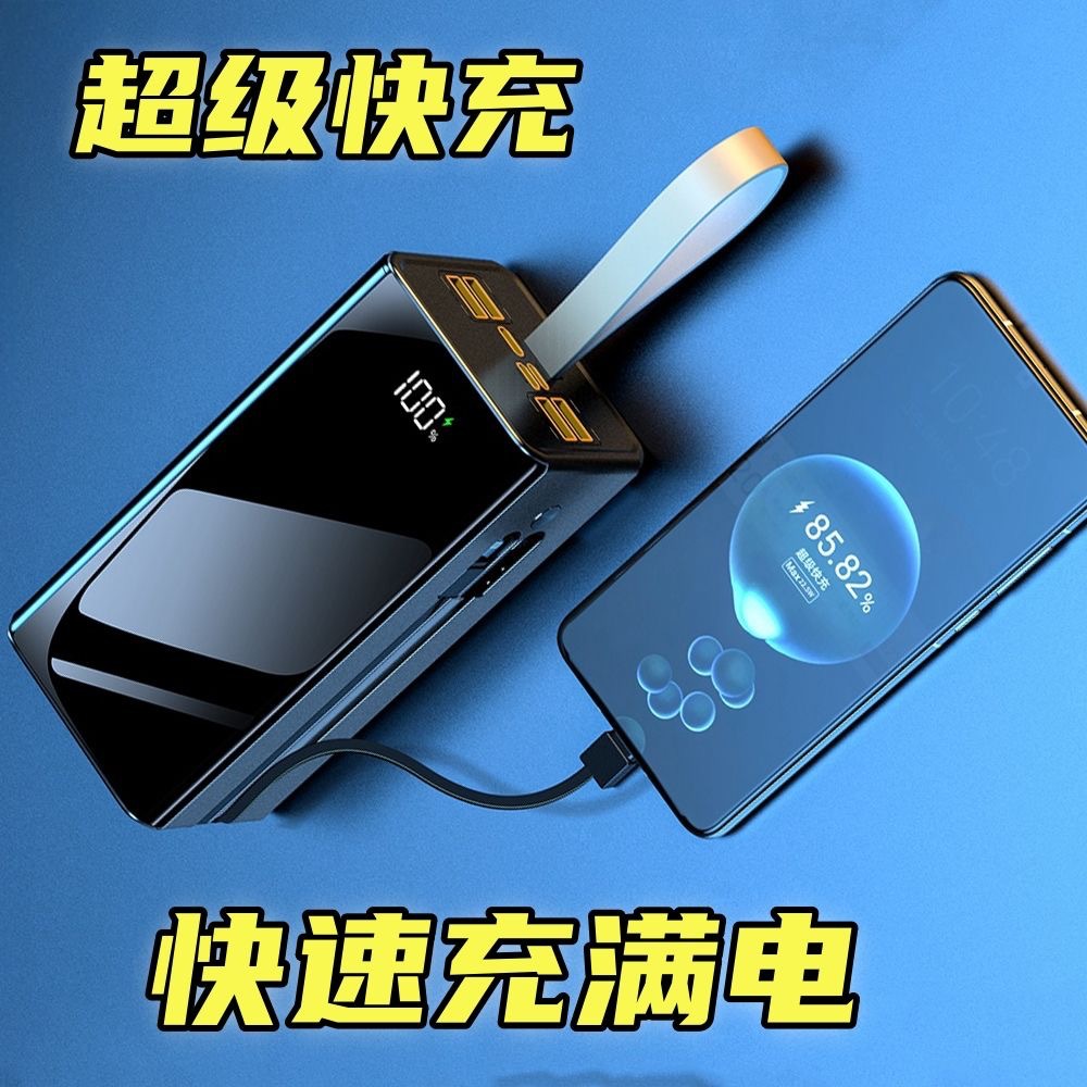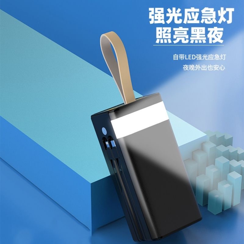 跨境60000毫安超大容量充电宝快充自带线户外直播露营灯移动电源
